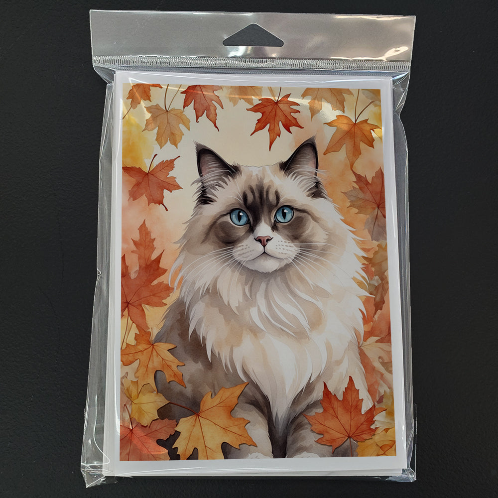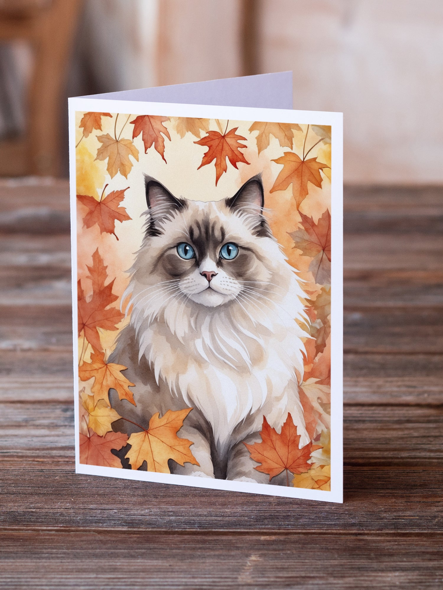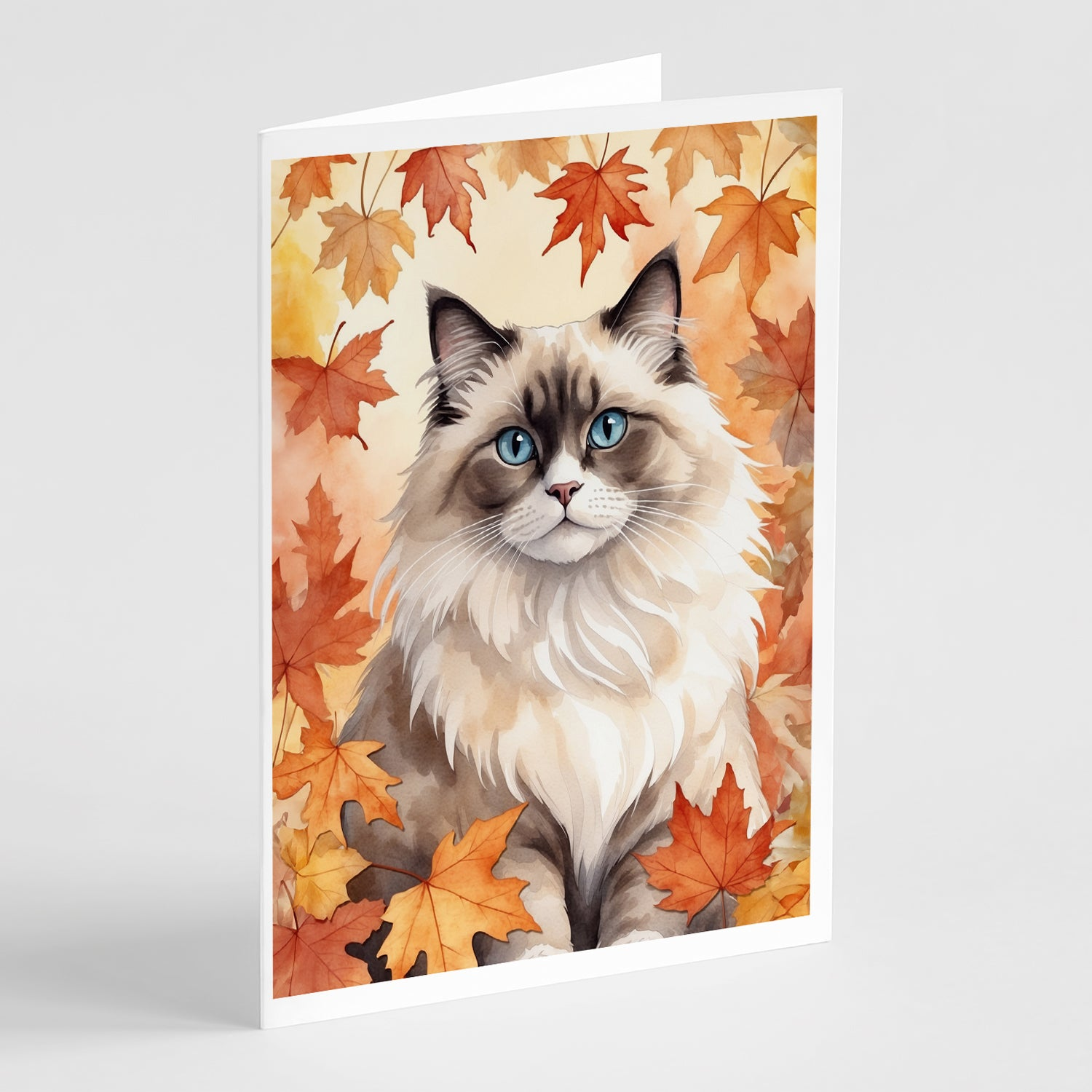 Greeting Cards Pack of 8 featuring breed specific Ragdoll artwork. Celebrate special moments with Caroline's Treasures Printed Greeting Card Pack. This pack includes eight beautifully folded 5x7 cards, accompanied by eight matching white envelopes. With blank interiors, these cards provide ample space for your personalized messages and heartfelt holiday greetings. Each card features captivating full-color artwork, meticulously printed in our facility on high-quality 80 lb cover stock or 216 GSM. The super smooth finish of the white cards enhances the visual impact of the artwork, creating a truly stunning presentation. Designed by our talented in-house artists or licensed artists, the artwork on these cards showcases their creativity and attention to detail. From vibrant illustrations to captivating designs, each card tells its own unique story. Whether it's for birthdays, anniversaries, holidays, or any special occasion, Caroline's Treasures Greeting Card Pack is the perfect way to convey your heartfelt sentiments. Share joy, love, and warm wishes with these exquisite cards and make every moment unforgettable.