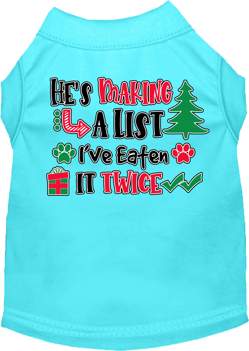 He's Making a List... Screen Print Dog Shirt Aqua Size XXL is backordered and will ship as soon as it is back in stock.
