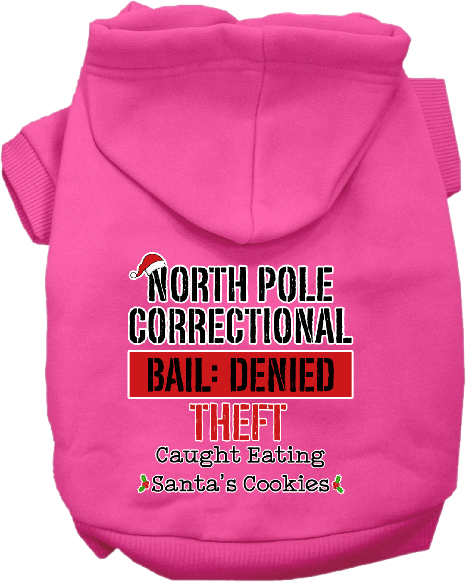 North Pole Correctional Screen Print Dog Hoodie Bright Pink Size XXXL is backordered and will ship as soon as it is back in stock.