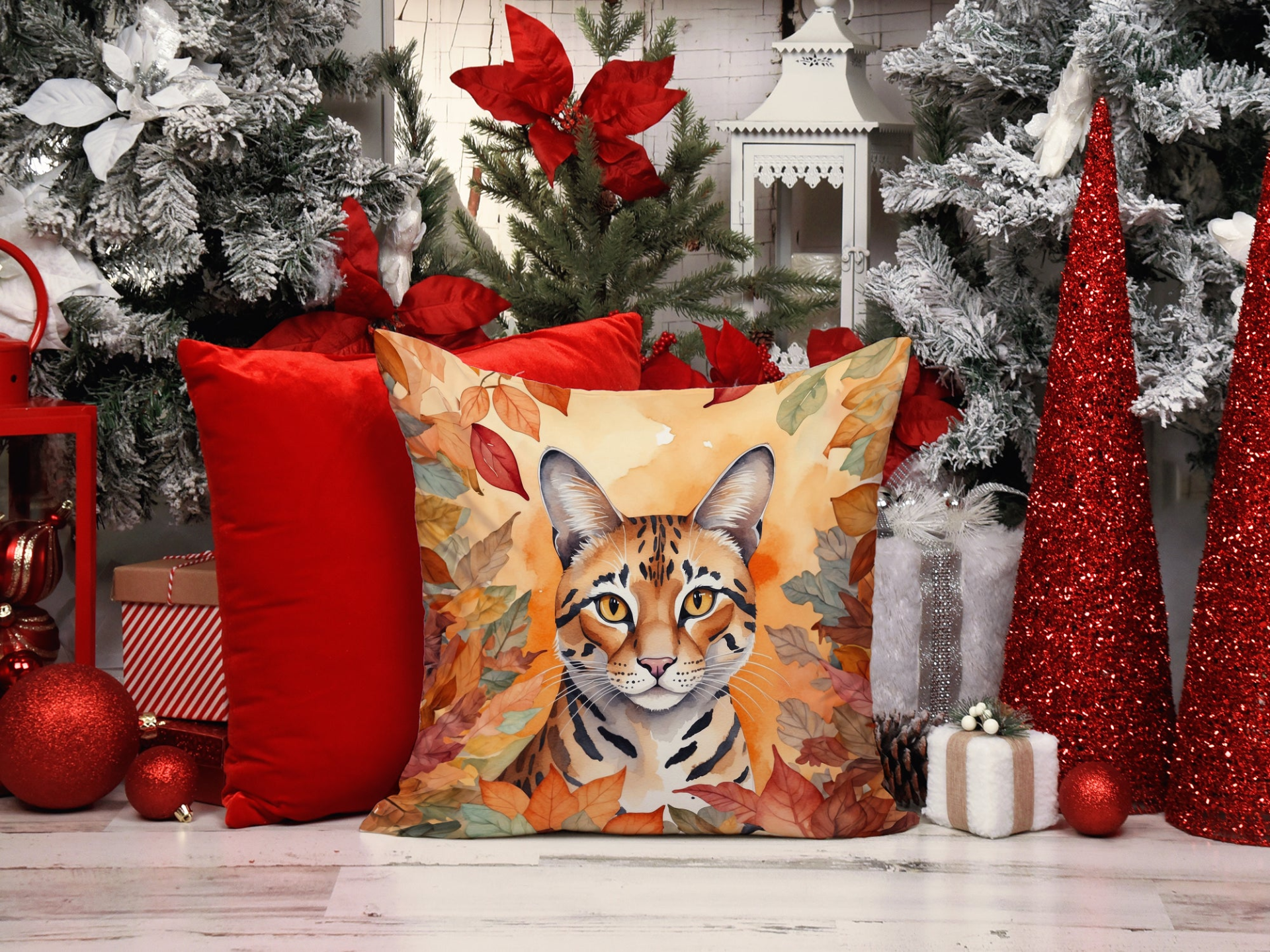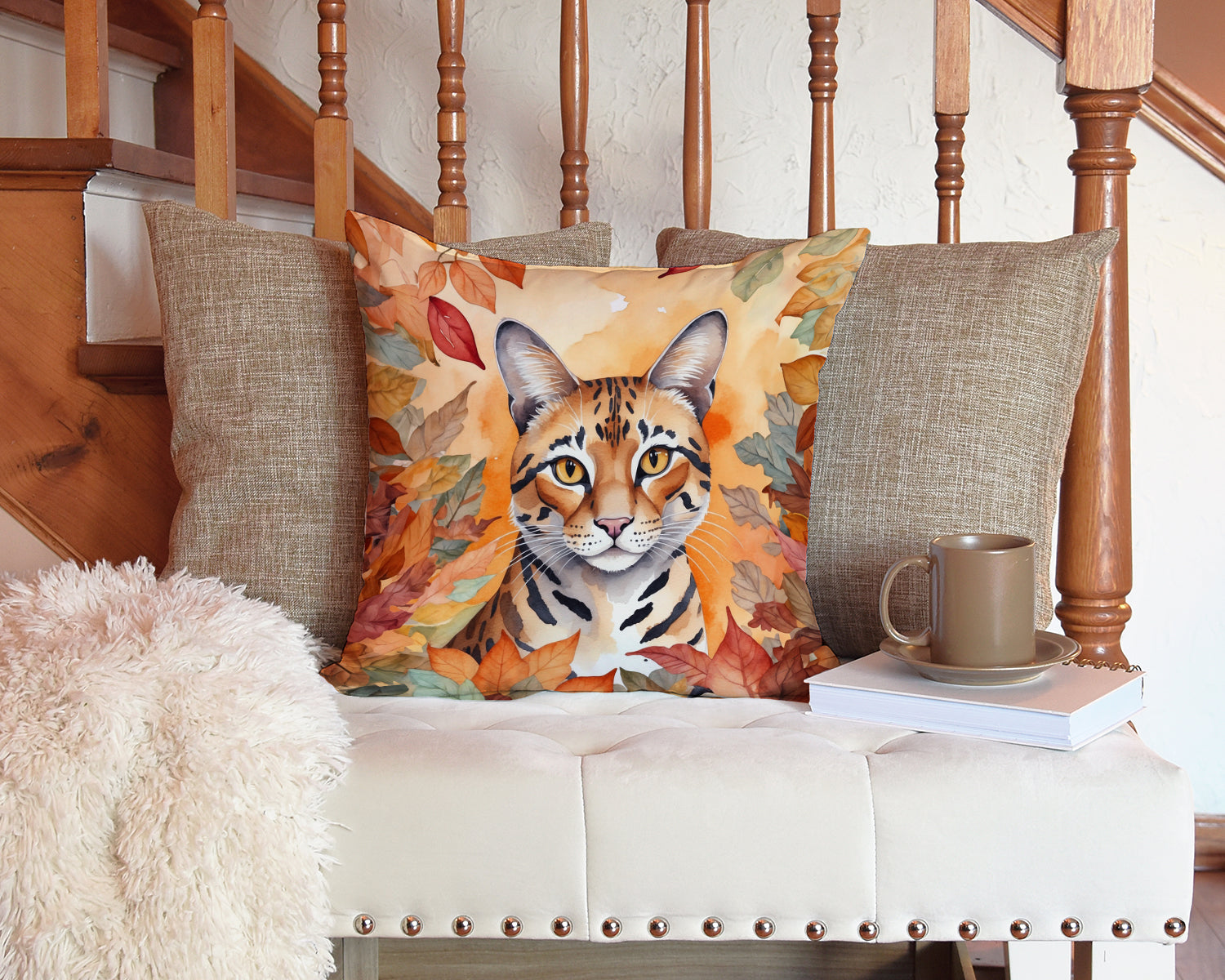Throw Pillow featuring breed specific Safari Cat artwork. Celebrate Halloween with this Halloween Pillow. Add a touch of vibrancy and comfort to your outdoor seating with Caroline's Treasures Fabric Decorative Pillow. Measuring approximately 14 inches by 14 inches, this outdoor pillow is crafted to elevate the appeal of your patio furniture, infusing it with vivid color and artistic flair. The pillow includes a 100% Polyester Fabric sham filled with a quality pillow form to provide superior comfort. Innovatively made from our brand new material, specifically woven for its water resistance, this pillow is designed for durability. The soft canvas fabric offers versatility in use, fit for your indoor couch or your outdoor patio, porch, or veranda. The fabric is dyed with colorfast dyes built for resilience against weather conditions, ensuring the pillow retains its beauty over time. Constructed by sewing three fabric pieces to create a sham, the polyester insert is then nestled inside to form the pillow, resulting in an overstuffed pillow that maintains its shape. Both the sham and the pillow insert are proudly made in the United States. As the pillows are handcrafted, there may be minor variations in size, further enhancing their unique charm. Experience comfort in style with Caroline's Treasures Fabric Decorative Pillow.
