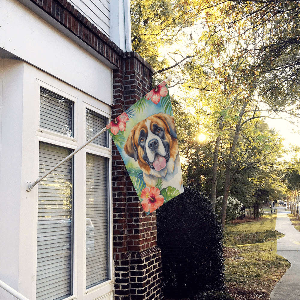 House Flag featuring breed specific Saint Bernard artwork. Presenting our Heavy Duty Polyester House Size Decorative Sleeve Pole Flag, a vibrant addition to enhance the aesthetic appeal of your home. This large decorative flag, measuring approximately 28 x 40 inches, offers ample coverage and visibility. Each flag is meticulously sewn and made individually, ensuring a unique piece that may slightly vary in size. It's a sleeve pole flag, designed to fit a standard decorative flag pole effortlessly. Please note that the flag pole and bracket are not included and should be purchased separately. What sets our flag apart is its dual-sided print. The design is mirrored on both sides of the fabric, allowing for uniform visibility regardless of the angle. Printed in full color, our flag showcases vibrant hues that truly stand out. To ensure lasting vibrancy and durability, the dyes are heat-set into the fabric. This ensures your flag remains bright and captivating through various weather conditions. Elevate the look of your home with our Heavy Duty Polyester House Size Decorative Sleeve Pole Flag!