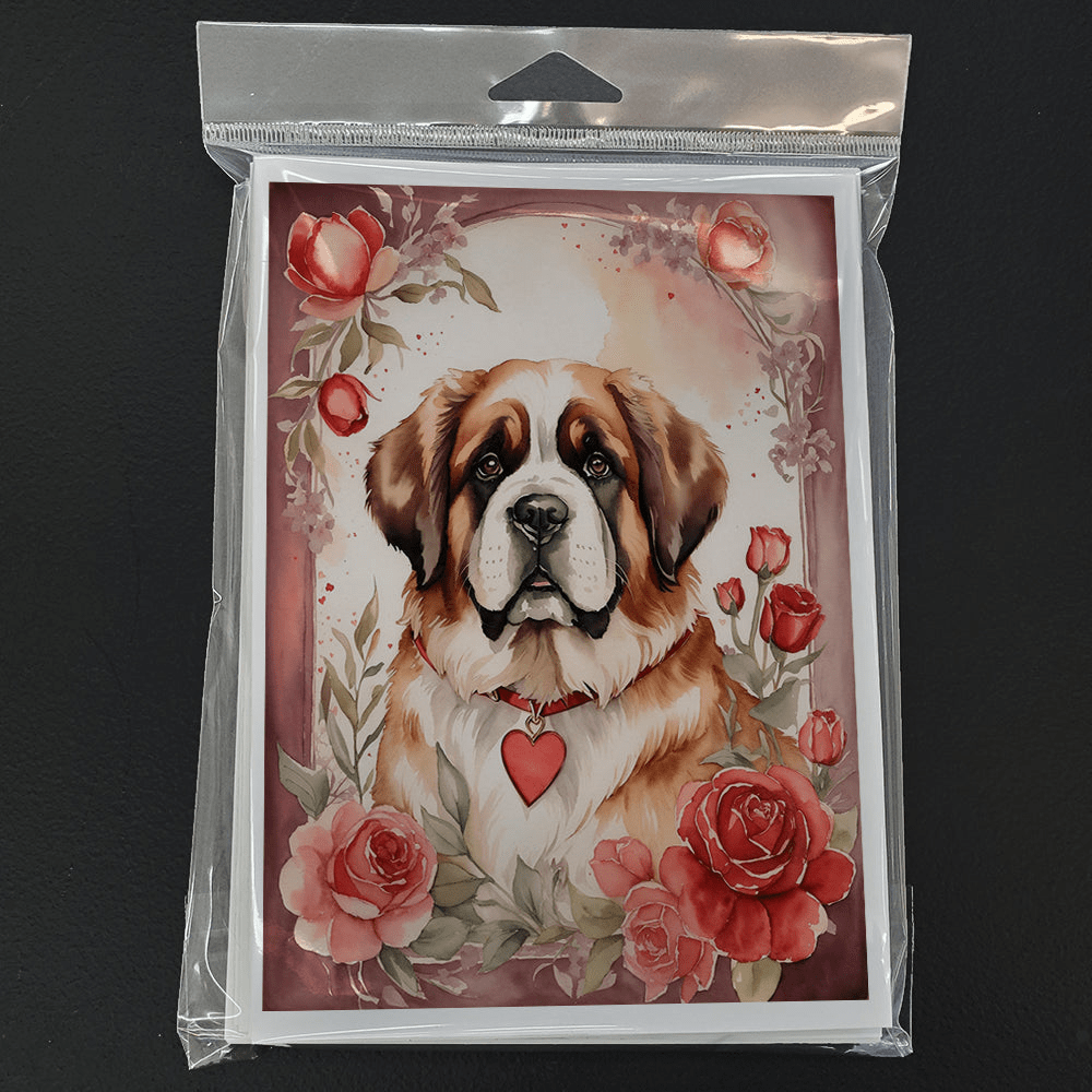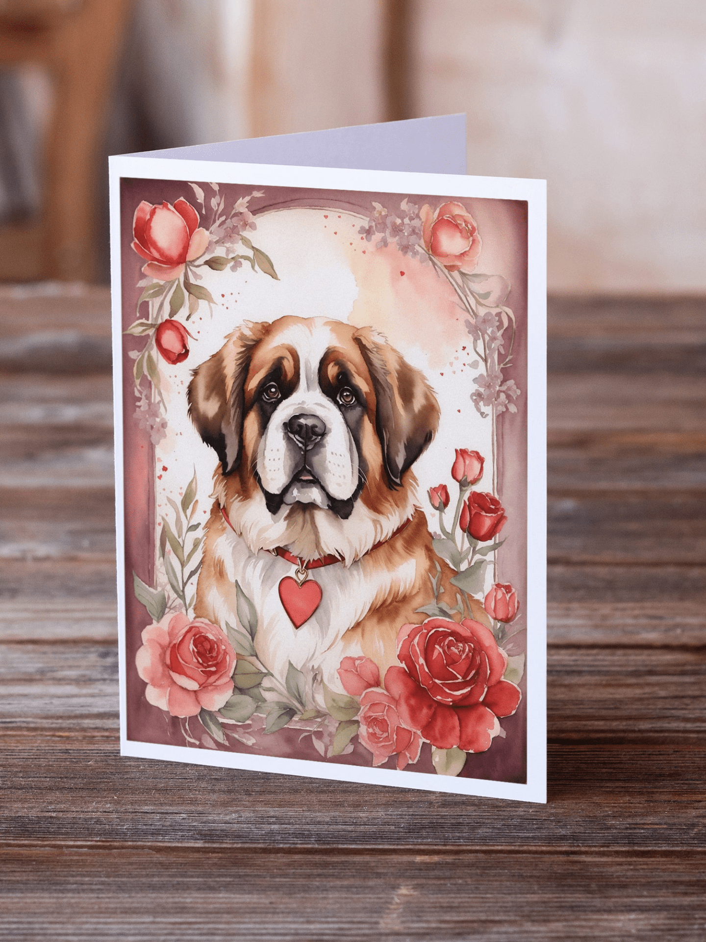 Saint Bernard Valentine Roses Greeting Cards Pack of 8