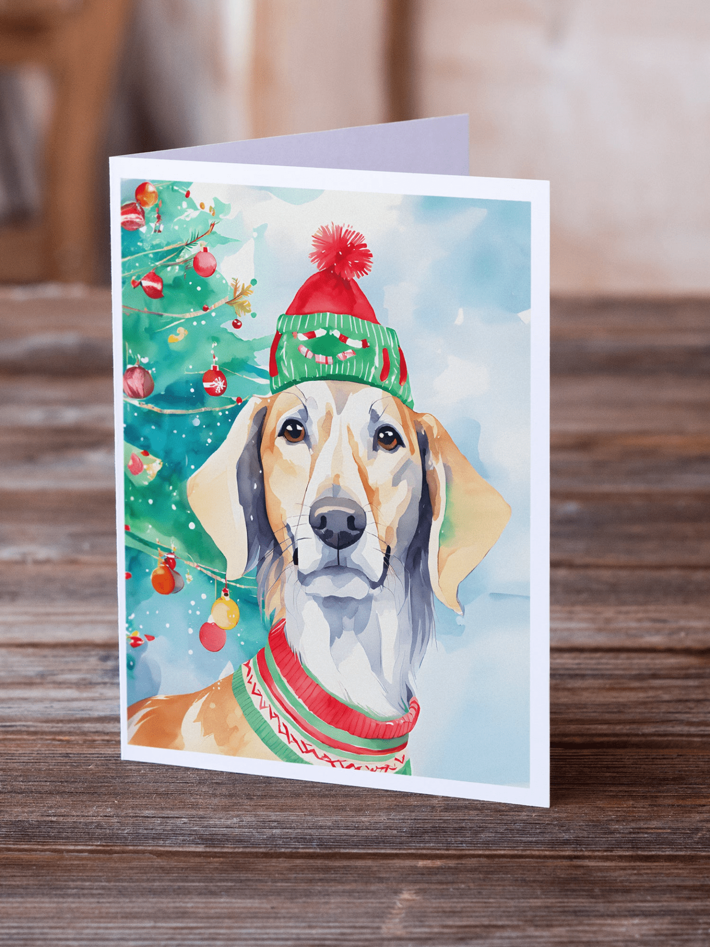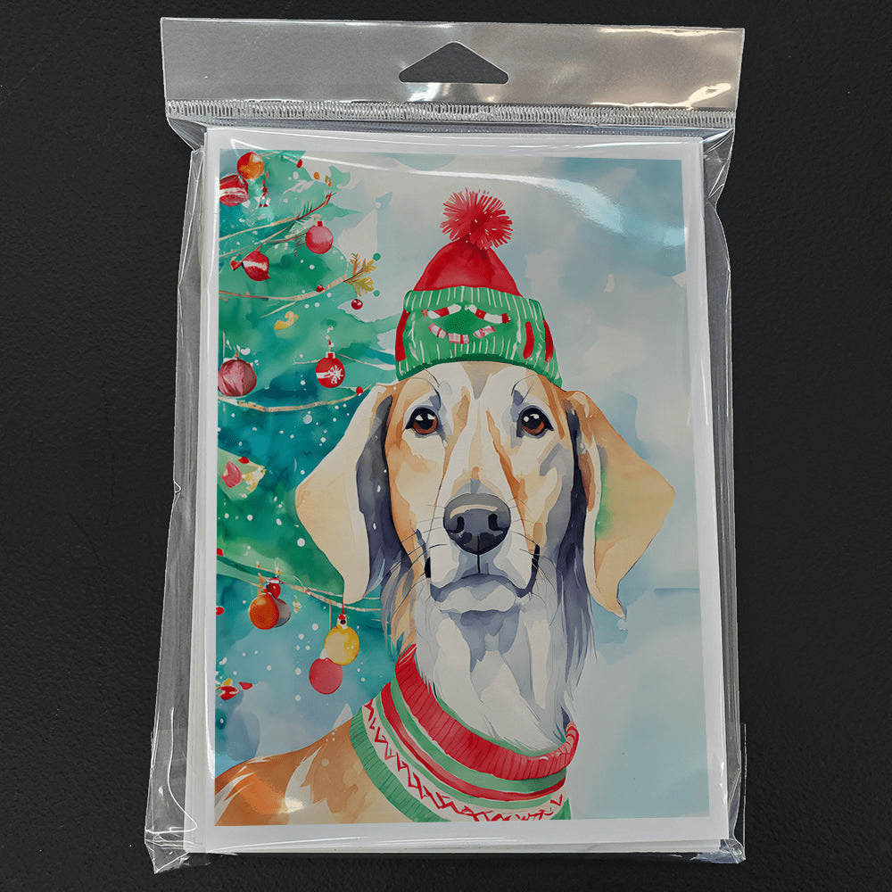Greeting Cards Pack of 8 featuring breed specific Saluki artwork. Celebrate Christmas with this Christmas . Celebrate special moments with Caroline's Treasures Printed Greeting Card Pack. This pack includes eight beautifully folded 5x7 cards, accompanied by eight matching white envelopes. With blank interiors, these cards provide ample space for your personalized messages and heartfelt holiday greetings. Each card features captivating full-color artwork, meticulously printed in our facility on high-quality 80 lb cover stock or 216 GSM. The super smooth finish of the white cards enhances the visual impact of the artwork, creating a truly stunning presentation. Designed by our talented in-house artists or licensed artists, the artwork on these cards showcases their creativity and attention to detail. From vibrant illustrations to captivating designs, each card tells its own unique story. Whether it's for birthdays, anniversaries, holidays, or any special occasion, Caroline's Treasures Greeting Card Pack is the perfect way to convey your heartfelt sentiments. Share joy, love, and warm wishes with these exquisite cards and make every moment unforgettable.