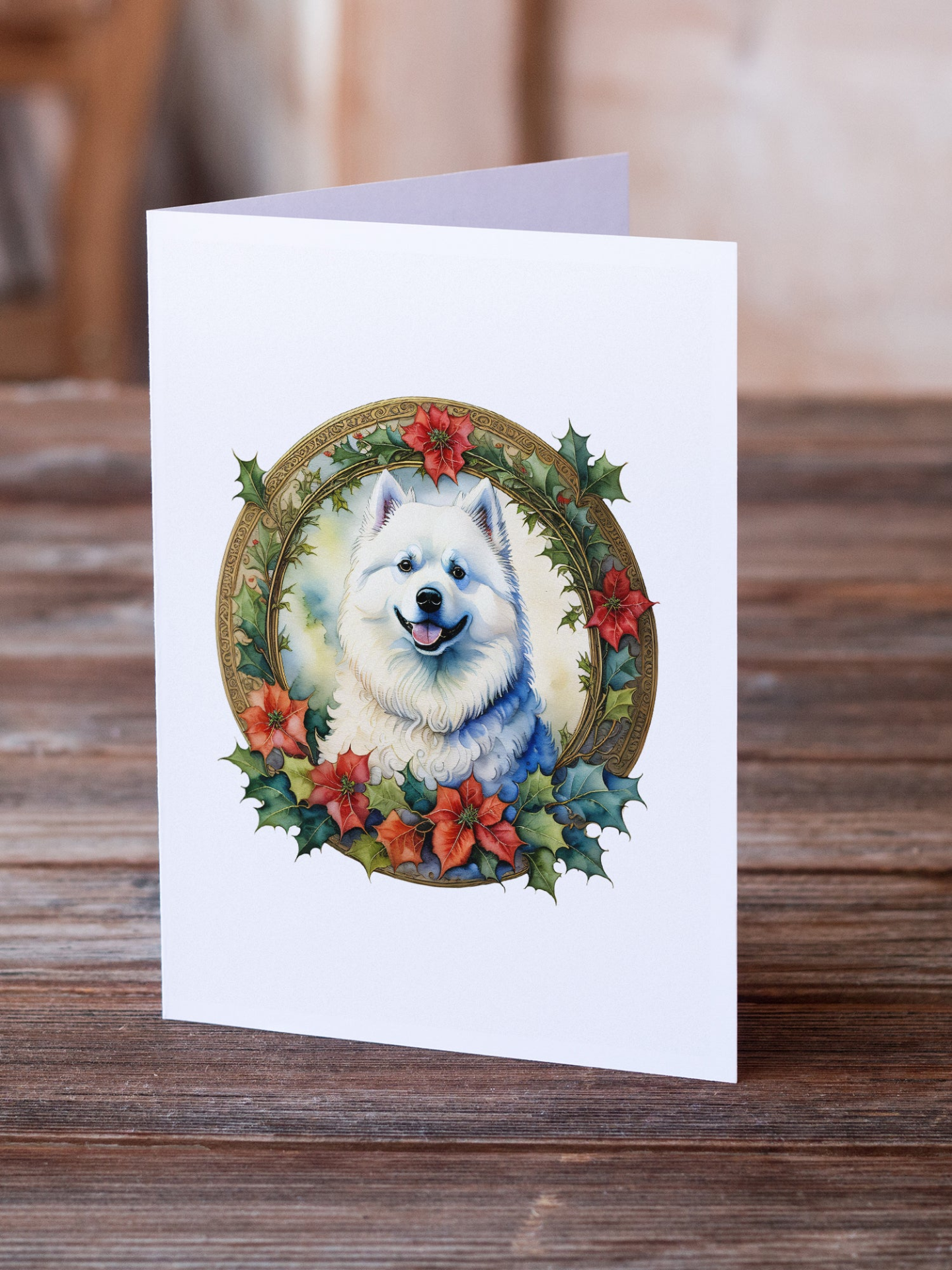 Greeting Cards Pack of 8 featuring breed specific Samoyed artwork. Celebrate Christmas with this Christmas . Celebrate special moments with Caroline's Treasures Printed Greeting Card Pack. This pack includes eight beautifully folded 5x7 cards, accompanied by eight matching white envelopes. With blank interiors, these cards provide ample space for your personalized messages and heartfelt holiday greetings. Each card features captivating full-color artwork, meticulously printed in our facility on high-quality 80 lb cover stock or 216 GSM. The super smooth finish of the white cards enhances the visual impact of the artwork, creating a truly stunning presentation. Designed by our talented in-house artists or licensed artists, the artwork on these cards showcases their creativity and attention to detail. From vibrant illustrations to captivating designs, each card tells its own unique story. Whether it's for birthdays, anniversaries, holidays, or any special occasion, Caroline's Treasures Greeting Card Pack is the perfect way to convey your heartfelt sentiments. Share joy, love, and warm wishes with these exquisite cards and make every moment unforgettable.