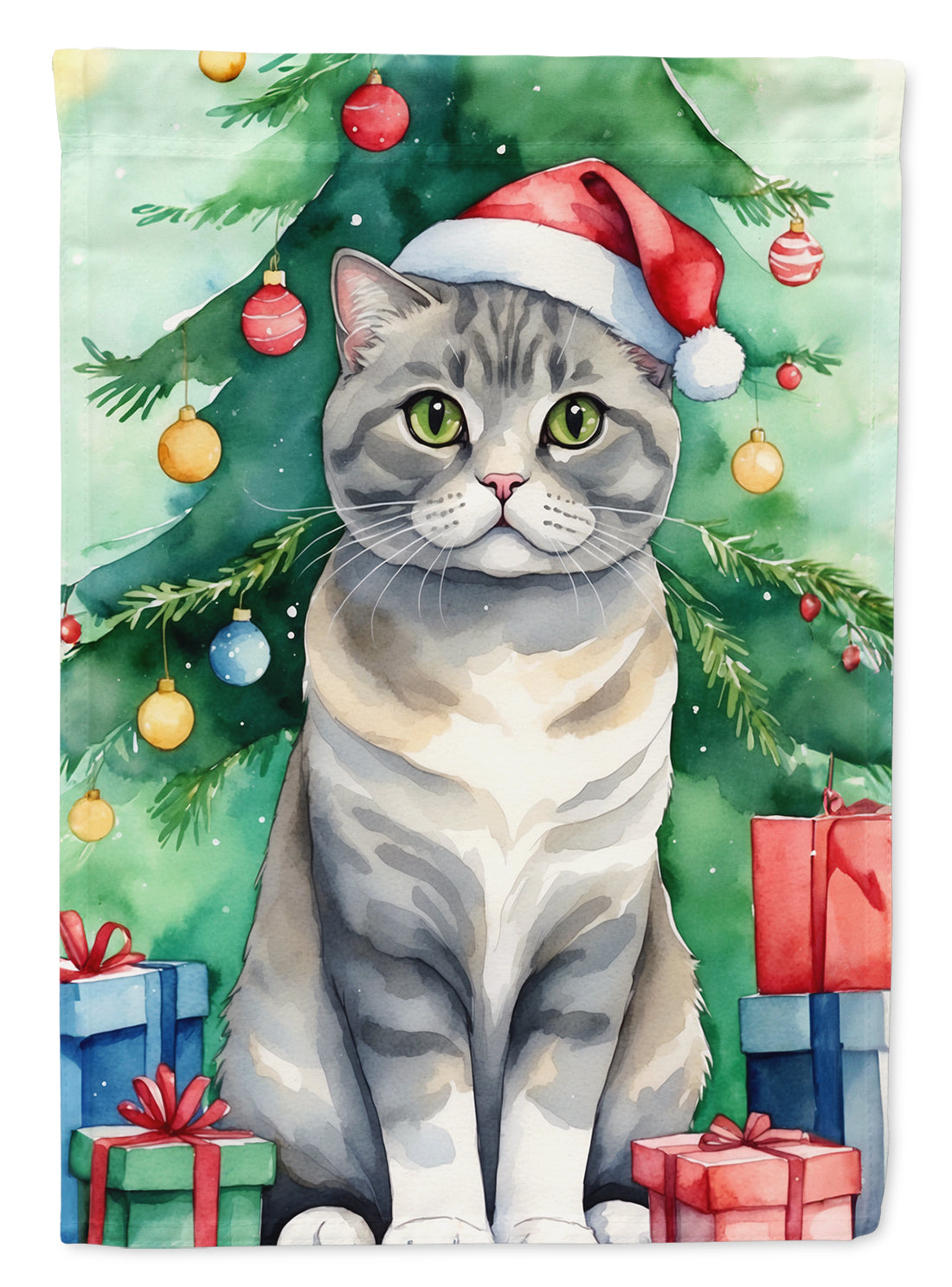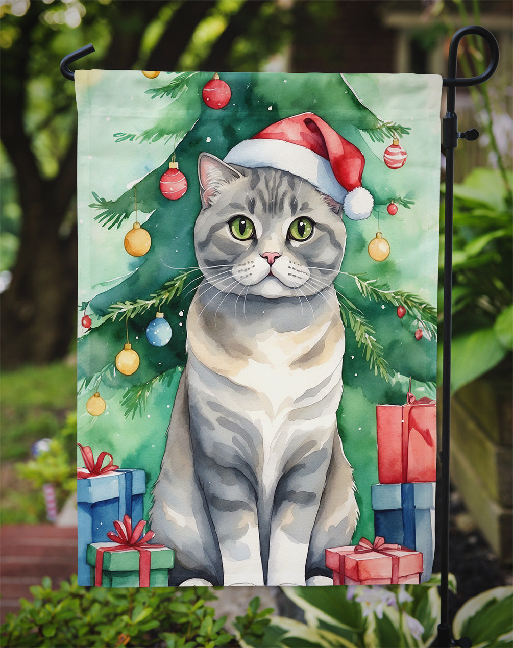 Scottish Fold Cat By the Christmas Tree Garden Flag