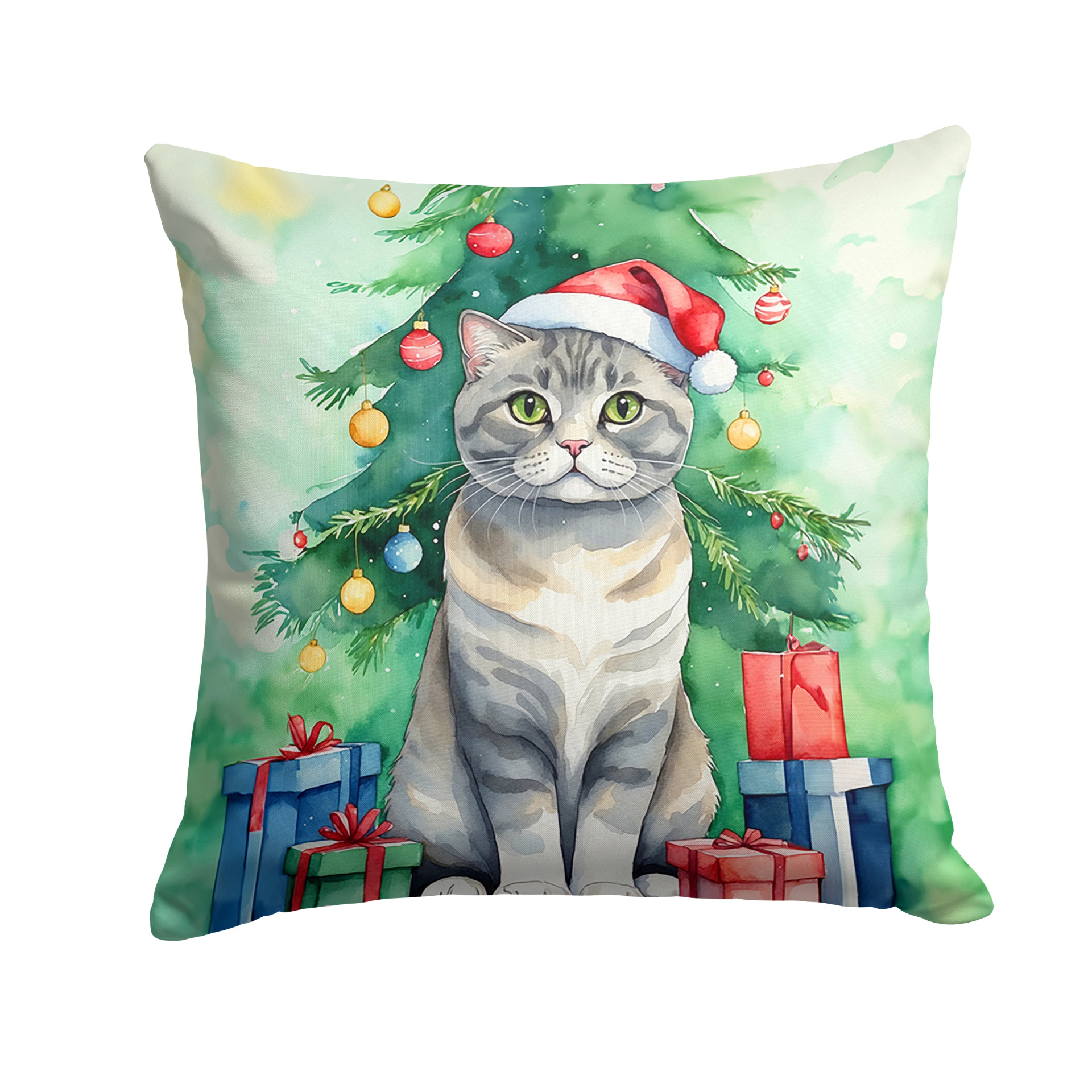 Throw Pillow featuring breed specific Scottish Fold artwork. Celebrate Christmas with this Christmas Pillow. Revitalize your outdoor or indoor living space with Caroline's Treasures 18x18 Fabric Decorative Pillow. With a generously sized dimension of approximately 18 inches by 18 inches, this pillow makes a comfortable and aesthetic addition to any seating area. Made from a unique, water-resistant material developed by Caroline's Treasures, the pillow sham is 100% polyester fabric that's durable and ready to weather any condition. Its vibrant, full-color artwork will not fade over time as it is dyed with color-fast dyes. Whether you place it on your patio furniture, porch, veranda, or indoor couch, its soft canvas fabric ensures a cozy experience. The pillow is handcrafted in the United States, featuring a sham created from three pieces of fabric and a polyester insert for enduring shape and overstuffed comfort. Despite being robustly built to endure the outdoors, it is as soft and snug as your favorite indoor cushions. Please note, as all our pillows are handmade, sizes may vary slightly, adding to the charm of this unique decorative item.