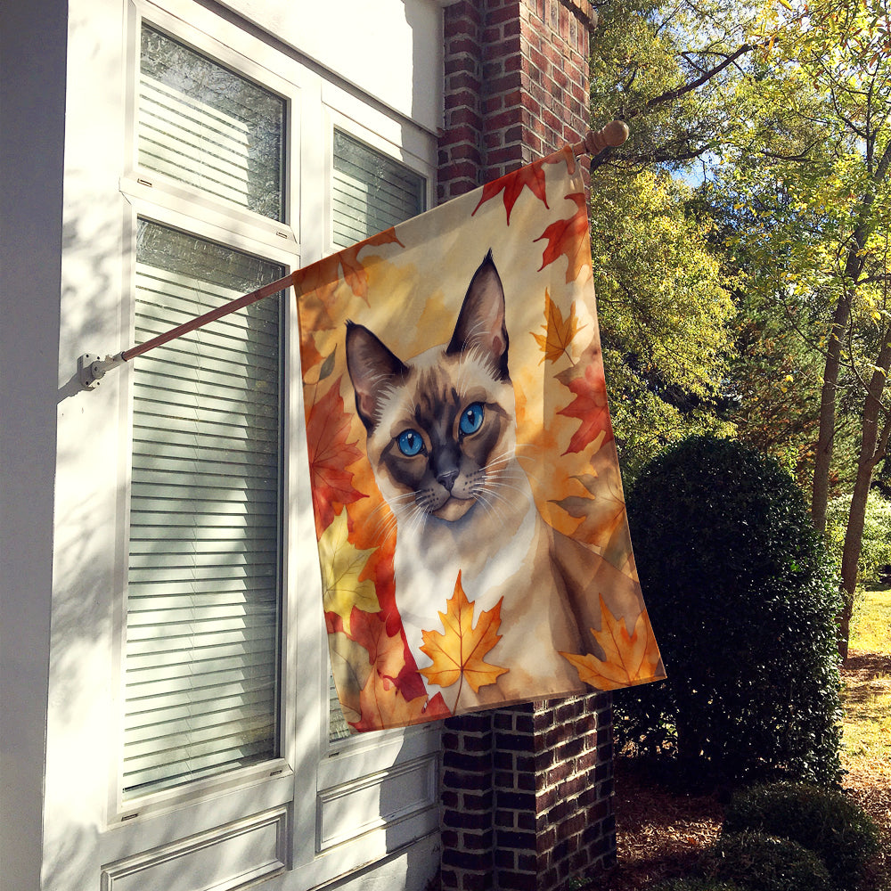 House Flag featuring breed specific Siamese artwork. Presenting our Heavy Duty Polyester House Size Decorative Sleeve Pole Flag, a vibrant addition to enhance the aesthetic appeal of your home. This large decorative flag, measuring approximately 28 x 40 inches, offers ample coverage and visibility. Each flag is meticulously sewn and made individually, ensuring a unique piece that may slightly vary in size. It's a sleeve pole flag, designed to fit a standard decorative flag pole effortlessly. Please note that the flag pole and bracket are not included and should be purchased separately. What sets our flag apart is its dual-sided print. The design is mirrored on both sides of the fabric, allowing for uniform visibility regardless of the angle. Printed in full color, our flag showcases vibrant hues that truly stand out. To ensure lasting vibrancy and durability, the dyes are heat-set into the fabric. This ensures your flag remains bright and captivating through various weather conditions. Elevate the look of your home with our Heavy Duty Polyester House Size Decorative Sleeve Pole Flag!
