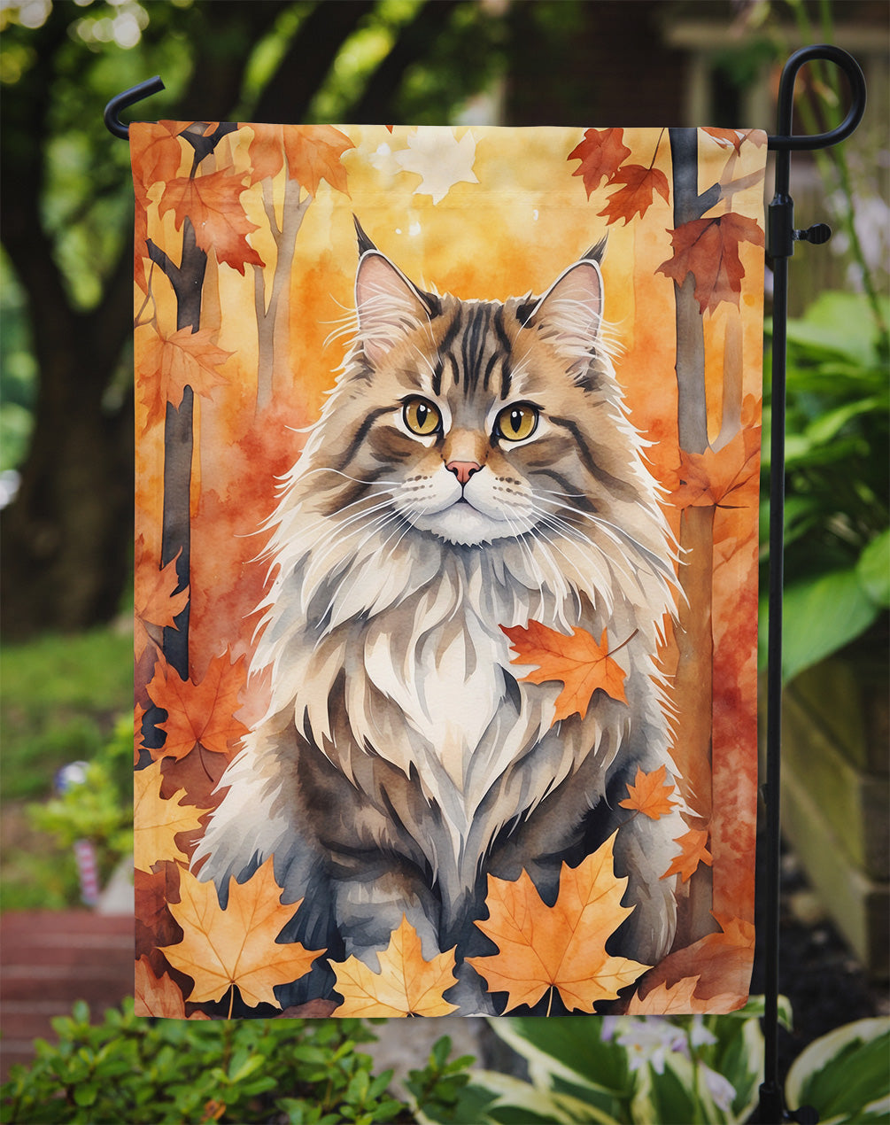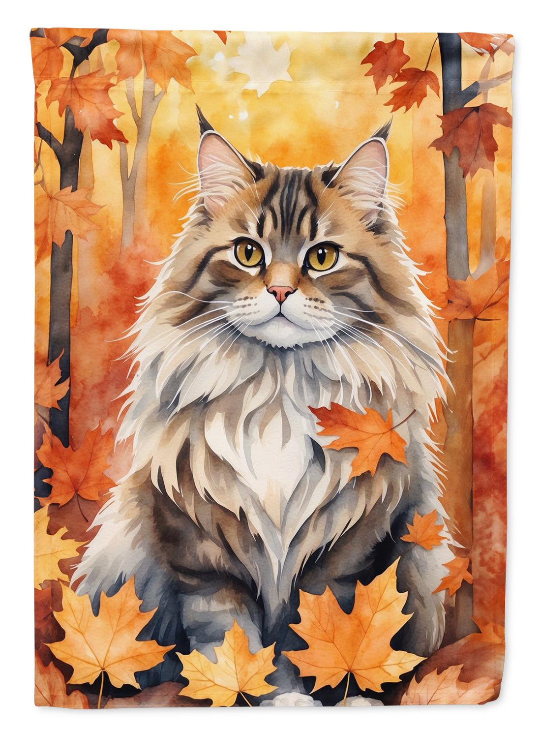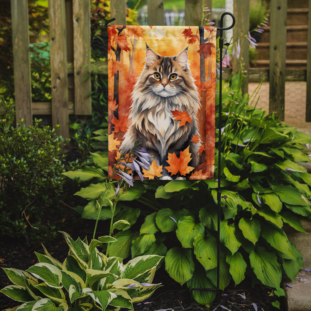Garden Flag featuring breed specific Siberian Cat artwork. Enhance the beauty of your garden, patio, or yard with Caroline's Treasures Decorative Garden Flag, proudly made in the USA. Crafted from two pieces of thick, double-sided polyester fabric, this 2-ply garden flag is designed to withstand various weather conditions, making it water-resistant and weatherproof. Featuring correctly readable words on both sides, this garden flag offers a delightful visual experience from any angle. With its heavier weight, it stands out among other garden flags, ensuring stability and durability even in wind, rain, and snow. Measuring approximately 11 1/4 inches by 15 1/2 inches, this flag allows you to personalize your outdoor decor. It comes with a 1 1/2-inch sleeve sewn in, allowing easy attachment to any standard garden flag stand or garden size porch hanger (sold separately). Make a statement in your outdoor space with Caroline's Treasures Decorative Garden Flag, a vibrant and high-quality flag that adds color and personality to your surroundings. Proudly made in the USA, it's a symbol of quality craftsmanship and attention to detail.