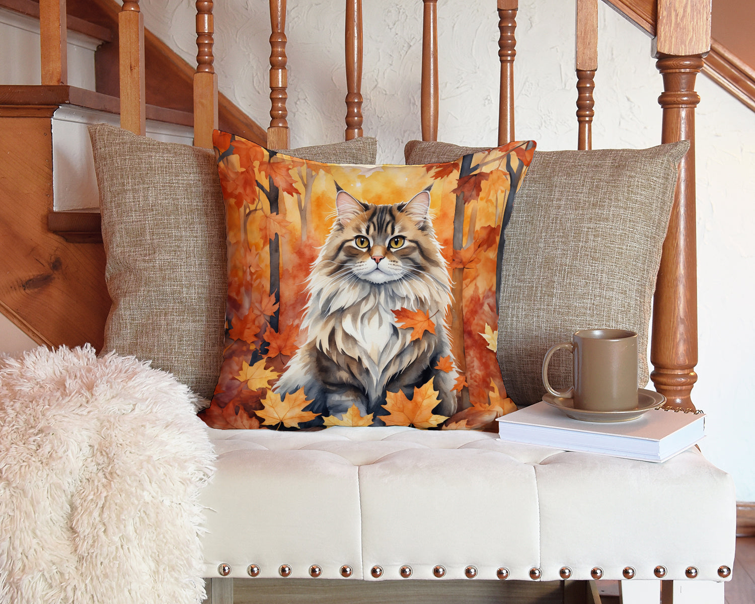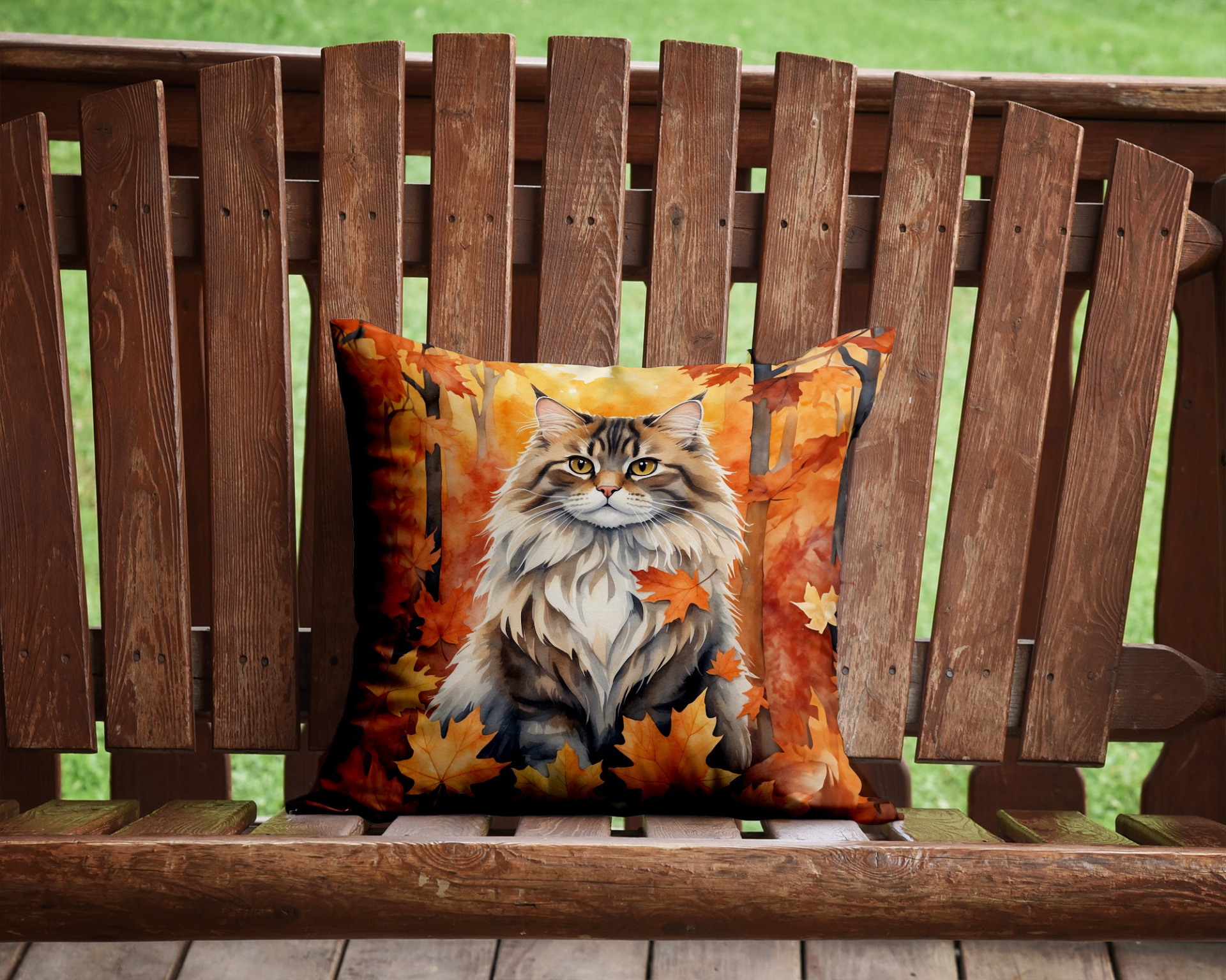 Throw Pillow featuring breed specific Siberian Cat artwork. Celebrate Halloween with this Halloween Pillow. Add a touch of vibrancy and comfort to your outdoor seating with Caroline's Treasures Fabric Decorative Pillow. Measuring approximately 14 inches by 14 inches, this outdoor pillow is crafted to elevate the appeal of your patio furniture, infusing it with vivid color and artistic flair. The pillow includes a 100% Polyester Fabric sham filled with a quality pillow form to provide superior comfort. Innovatively made from our brand new material, specifically woven for its water resistance, this pillow is designed for durability. The soft canvas fabric offers versatility in use, fit for your indoor couch or your outdoor patio, porch, or veranda. The fabric is dyed with colorfast dyes built for resilience against weather conditions, ensuring the pillow retains its beauty over time. Constructed by sewing three fabric pieces to create a sham, the polyester insert is then nestled inside to form the pillow, resulting in an overstuffed pillow that maintains its shape. Both the sham and the pillow insert are proudly made in the United States. As the pillows are handcrafted, there may be minor variations in size, further enhancing their unique charm. Experience comfort in style with Caroline's Treasures Fabric Decorative Pillow.
