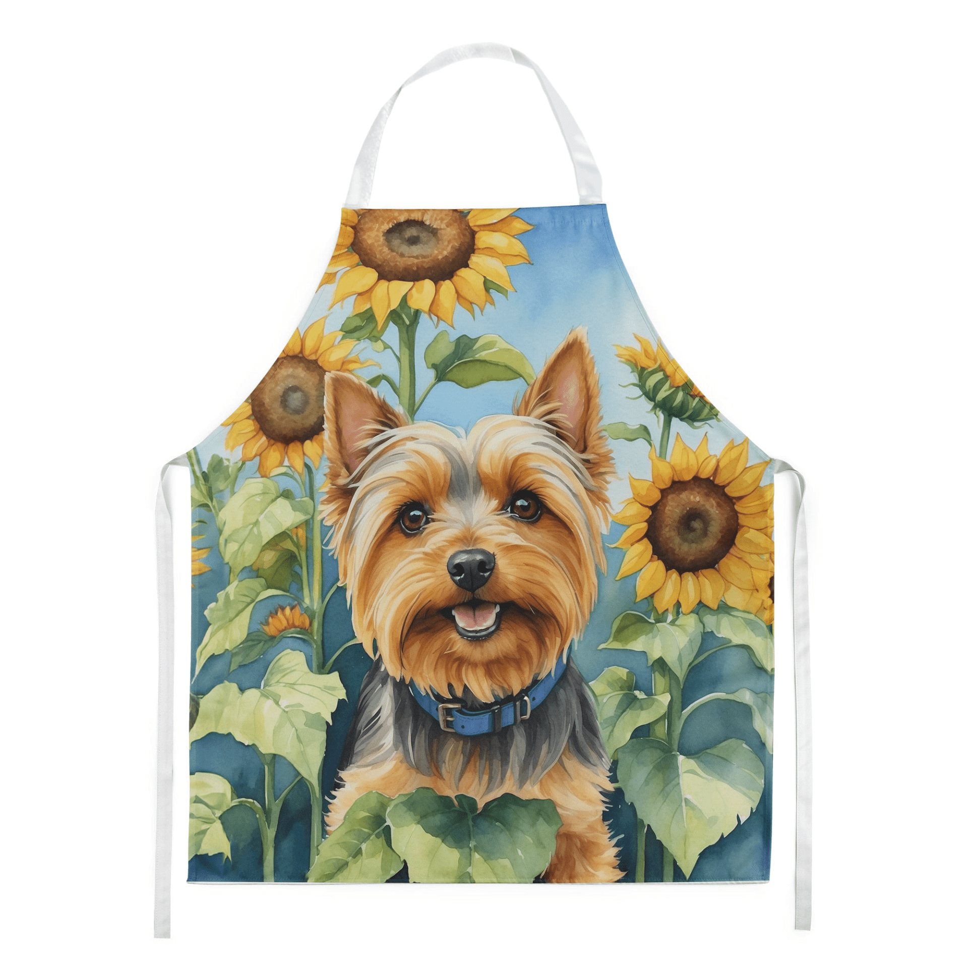 Apron featuring breed specific Silky Terrier artwork. Elevate your cooking, baking, and grilling experiences with our versatile Kitchen or BBQ Apron. This Bib Style apron isn't just limited to culinary activities - it also serves as an excellent baking apron, artist apron, server apron, gardening apron, or even a dog grooming apron. The apron showcases vibrant full-color artwork contributed by one of our talented artists, bringing a dash of style to your daily tasks. With dimensions of approximately 27"W x 30"H, it provides ample coverage to protect your clothing from spills and splashes. Our apron is meticulously crafted from 100% Ultra Spun Polyester, known for its durability and lightweight nature. The apron comes with white tie straps, ensuring a comfortable and adjustable fit for all. It's a perfect choice for kitchen apron enthusiasts, whether you are a woman or a man. Designed for easy maintenance, this apron is fully machine washable. The quick-drying polyester material actively reduces staining, keeping your apron looking fresh and new for longer. Our beautifully designed apron isn't just a functional kitchen accessory - it's a fashion statement in the culinary world!