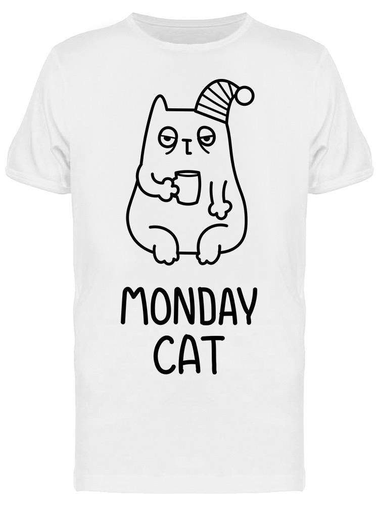 Sleepy Monday Cat With Coffee Tee Men's -Image by Shutterstock - XL / Male / White is backordered and will ship as soon as it is back in stock.