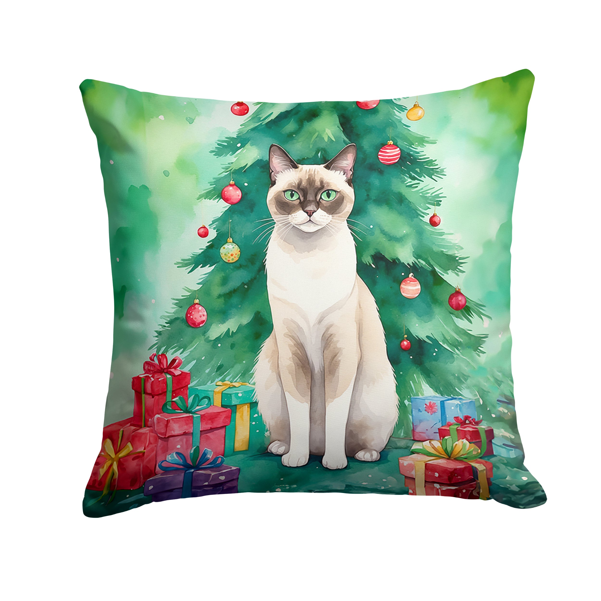 Throw Pillow featuring breed specific Snowshoe Cat artwork. Celebrate Christmas with this Christmas Pillow. Add a touch of vibrancy and comfort to your outdoor seating with Caroline's Treasures Fabric Decorative Pillow. Measuring approximately 14 inches by 14 inches, this outdoor pillow is crafted to elevate the appeal of your patio furniture, infusing it with vivid color and artistic flair. The pillow includes a 100% Polyester Fabric sham filled with a quality pillow form to provide superior comfort. Innovatively made from our brand new material, specifically woven for its water resistance, this pillow is designed for durability. The soft canvas fabric offers versatility in use, fit for your indoor couch or your outdoor patio, porch, or veranda. The fabric is dyed with colorfast dyes built for resilience against weather conditions, ensuring the pillow retains its beauty over time. Constructed by sewing three fabric pieces to create a sham, the polyester insert is then nestled inside to form the pillow, resulting in an overstuffed pillow that maintains its shape. Both the sham and the pillow insert are proudly made in the United States. As the pillows are handcrafted, there may be minor variations in size, further enhancing their unique charm. Experience comfort in style with Caroline's Treasures Fabric Decorative Pillow.