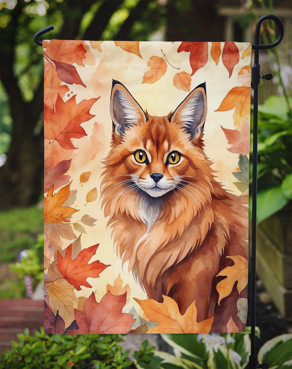 Garden Flag featuring breed specific Somali Cat artwork. Enhance the beauty of your garden, patio, or yard with Caroline's Treasures Decorative Garden Flag, proudly made in the USA. Crafted from two pieces of thick, double-sided polyester fabric, this 2-ply garden flag is designed to withstand various weather conditions, making it water-resistant and weatherproof. Featuring correctly readable words on both sides, this garden flag offers a delightful visual experience from any angle. With its heavier weight, it stands out among other garden flags, ensuring stability and durability even in wind, rain, and snow. Measuring approximately 11 1/4 inches by 15 1/2 inches, this flag allows you to personalize your outdoor decor. It comes with a 1 1/2-inch sleeve sewn in, allowing easy attachment to any standard garden flag stand or garden size porch hanger (sold separately). Make a statement in your outdoor space with Caroline's Treasures Decorative Garden Flag, a vibrant and high-quality flag that adds color and personality to your surroundings. Proudly made in the USA, it's a symbol of quality craftsmanship and attention to detail.