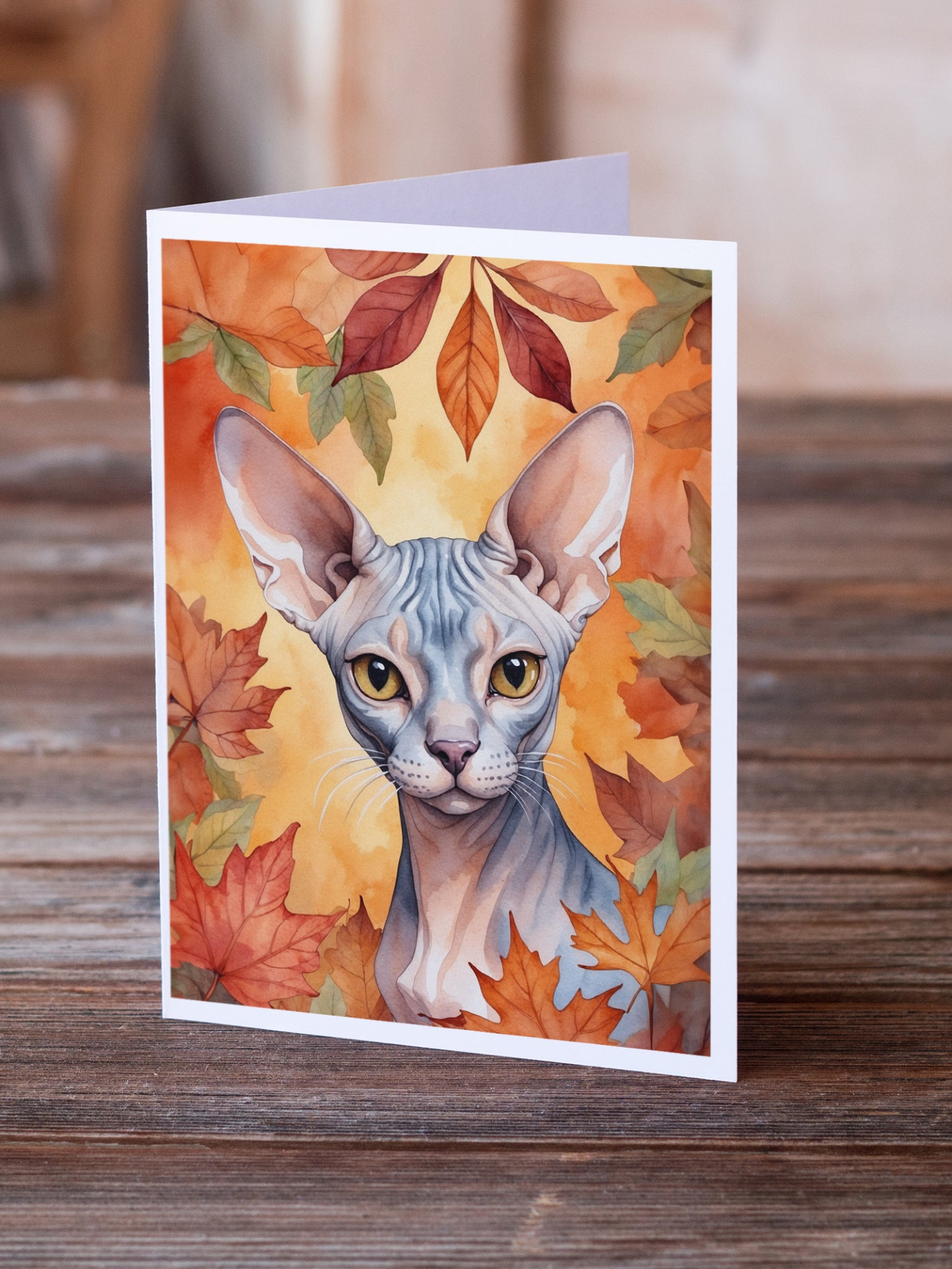 Greeting Cards Pack of 8 featuring breed specific Sphynx Cat artwork. Celebrate special moments with Caroline's Treasures Printed Greeting Card Pack. This pack includes eight beautifully folded 5x7 cards, accompanied by eight matching white envelopes. With blank interiors, these cards provide ample space for your personalized messages and heartfelt holiday greetings. Each card features captivating full-color artwork, meticulously printed in our facility on high-quality 80 lb cover stock or 216 GSM. The super smooth finish of the white cards enhances the visual impact of the artwork, creating a truly stunning presentation. Designed by our talented in-house artists or licensed artists, the artwork on these cards showcases their creativity and attention to detail. From vibrant illustrations to captivating designs, each card tells its own unique story. Whether it's for birthdays, anniversaries, holidays, or any special occasion, Caroline's Treasures Greeting Card Pack is the perfect way to convey your heartfelt sentiments. Share joy, love, and warm wishes with these exquisite cards and make every moment unforgettable.