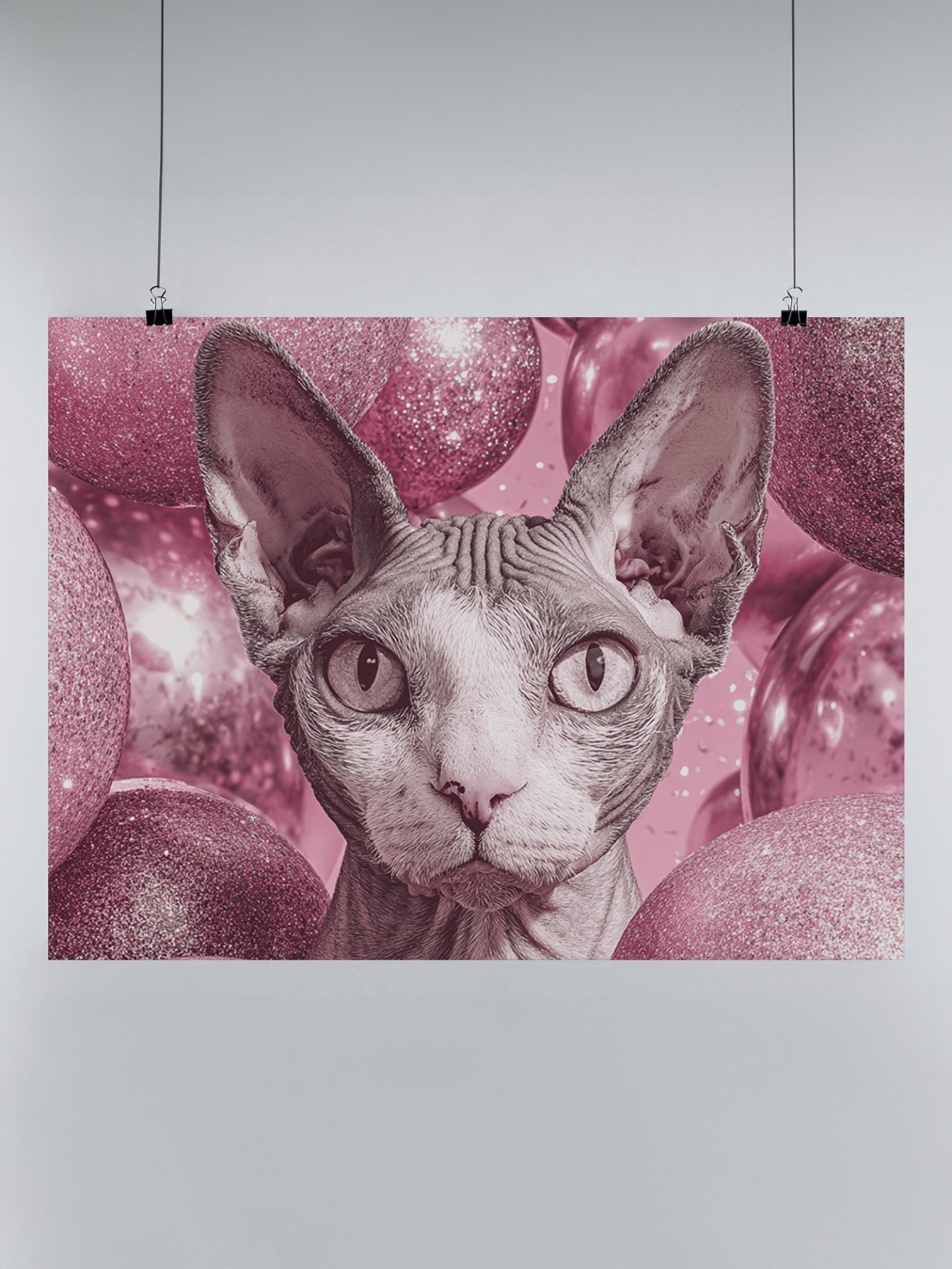 Sphynx Cat with Pink Glitter Spheres UN Poster