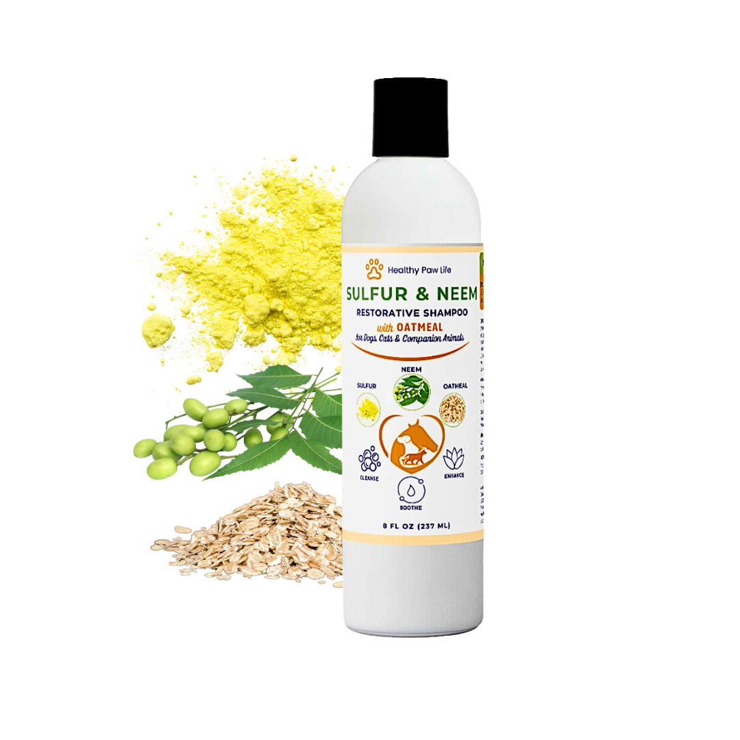Transform your pet’s bath time into a soothing and nourishing experience with our restorative shampoo, specially formulated for dogs, cats, and companion animals. Infused with sulfur, neem, and oatmeal, this holistic blend supports skin health, promotes hydration, and leaves your pet’s coat feeling soft and refreshed.