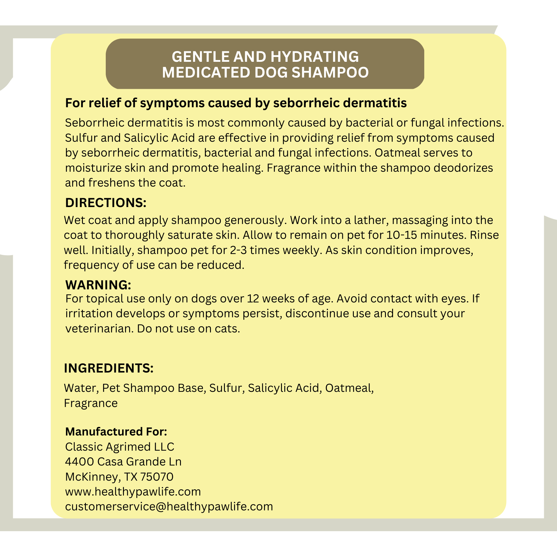 🐾 FORMULATED FOR DOGS – Medicated antiparasitic and antiseborrheic shampoo is specifically formulated for dogs over 12 weeks of age.