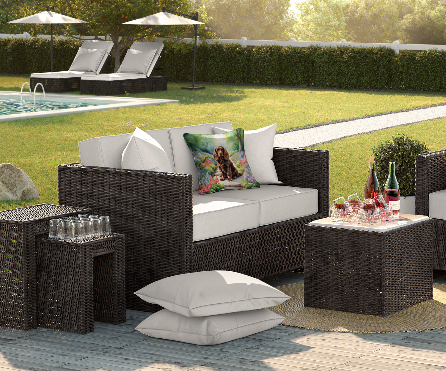 Throw Pillow featuring breed specific Sussex Spaniel artwork. Revitalize your outdoor or indoor living space with Caroline's Treasures 18x18 Fabric Decorative Pillow. With a generously sized dimension of approximately 18 inches by 18 inches, this pillow makes a comfortable and aesthetic addition to any seating area. Made from a unique, water-resistant material developed by Caroline's Treasures, the pillow sham is 100% polyester fabric that's durable and ready to weather any condition. Its vibrant, full-color artwork will not fade over time as it is dyed with color-fast dyes. Whether you place it on your patio furniture, porch, veranda, or indoor couch, its soft canvas fabric ensures a cozy experience. The pillow is handcrafted in the United States, featuring a sham created from three pieces of fabric and a polyester insert for enduring shape and overstuffed comfort. Despite being robustly built to endure the outdoors, it is as soft and snug as your favorite indoor cushions. Please note, as all our pillows are handmade, sizes may vary slightly, adding to the charm of this unique decorative item.