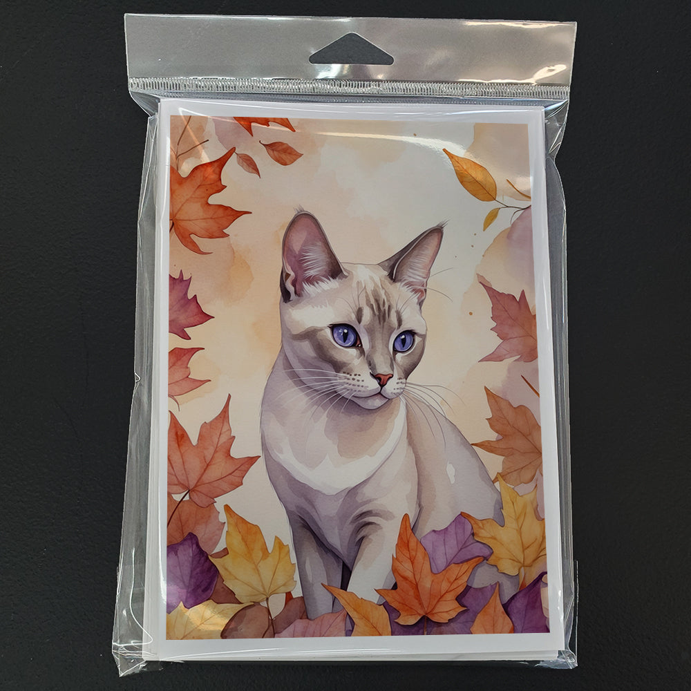 Thai Lilac Cat in Fall Leaves Greeting Cards Pack of 8