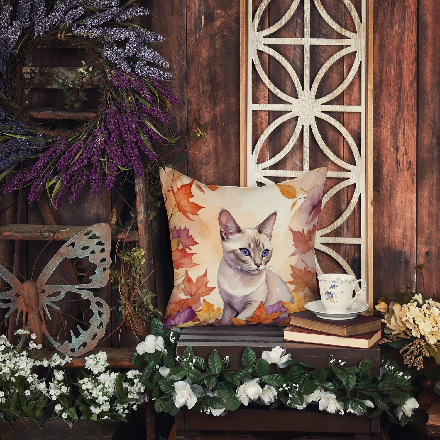 Throw Pillow featuring breed specific Thai Lilac artwork. Celebrate Halloween with this Halloween Pillow. Revitalize your outdoor or indoor living space with Caroline's Treasures 18x18 Fabric Decorative Pillow. With a generously sized dimension of approximately 18 inches by 18 inches, this pillow makes a comfortable and aesthetic addition to any seating area. Made from a unique, water-resistant material developed by Caroline's Treasures, the pillow sham is 100% polyester fabric that's durable and ready to weather any condition. Its vibrant, full-color artwork will not fade over time as it is dyed with color-fast dyes. Whether you place it on your patio furniture, porch, veranda, or indoor couch, its soft canvas fabric ensures a cozy experience. The pillow is handcrafted in the United States, featuring a sham created from three pieces of fabric and a polyester insert for enduring shape and overstuffed comfort. Despite being robustly built to endure the outdoors, it is as soft and snug as your favorite indoor cushions. Please note, as all our pillows are handmade, sizes may vary slightly, adding to the charm of this unique decorative item.