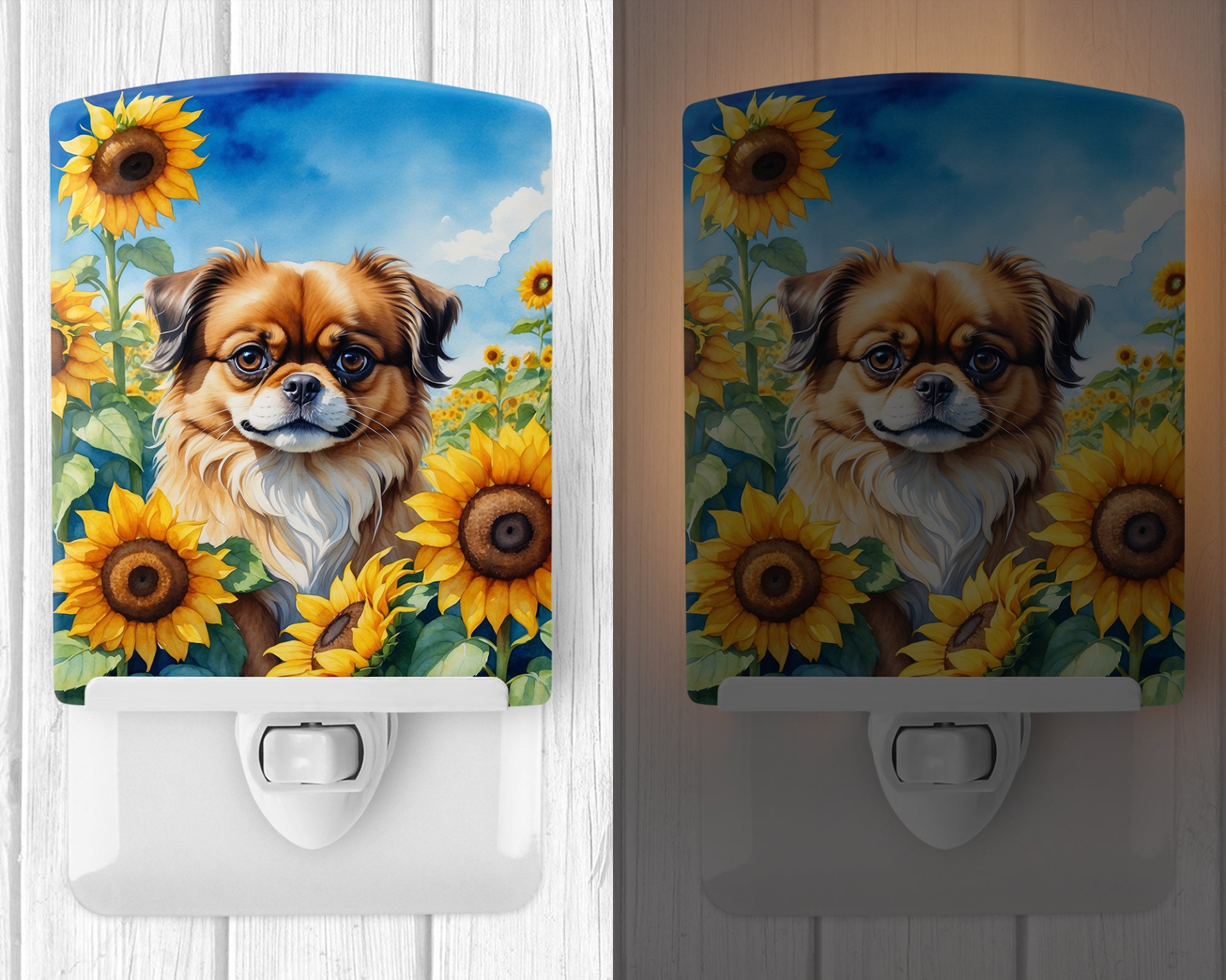 Tibetan Spaniel in Sunflowers Ceramic Night Light