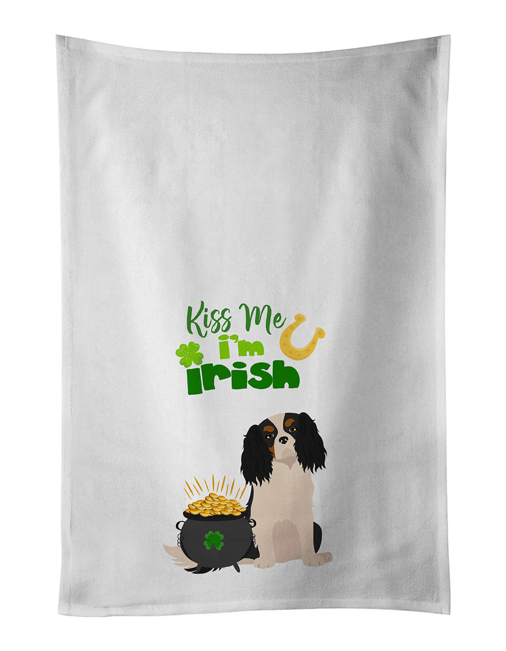 Tricolor Cavalier Spaniel St. Patrick's Day Kitchen Towel Set of 2