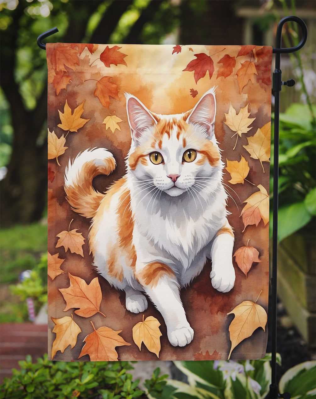 Garden Flag featuring breed specific Turkish Van artwork. Enhance the beauty of your garden, patio, or yard with Caroline's Treasures Decorative Garden Flag, proudly made in the USA. Crafted from two pieces of thick, double-sided polyester fabric, this 2-ply garden flag is designed to withstand various weather conditions, making it water-resistant and weatherproof. Featuring correctly readable words on both sides, this garden flag offers a delightful visual experience from any angle. With its heavier weight, it stands out among other garden flags, ensuring stability and durability even in wind, rain, and snow. Measuring approximately 11 1/4 inches by 15 1/2 inches, this flag allows you to personalize your outdoor decor. It comes with a 1 1/2-inch sleeve sewn in, allowing easy attachment to any standard garden flag stand or garden size porch hanger (sold separately). Make a statement in your outdoor space with Caroline's Treasures Decorative Garden Flag, a vibrant and high-quality flag that adds color and personality to your surroundings. Proudly made in the USA, it's a symbol of quality craftsmanship and attention to detail.