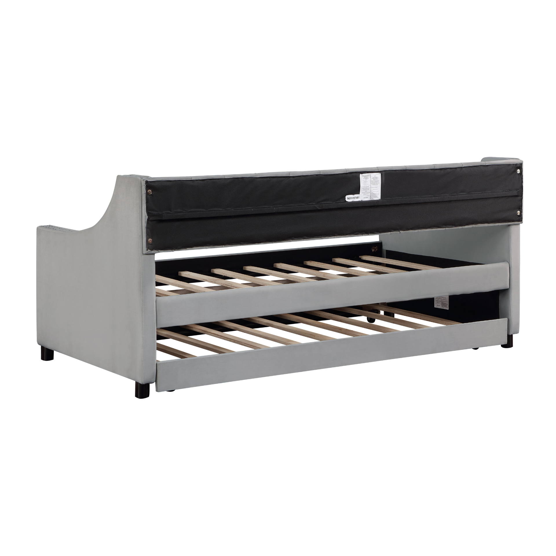 Designed to blend everyday comfort with timeless style, this twin-size daybed with a trundle serves as a refined centerpiece for bedrooms or guest rooms. The sturdy wood frame is elegantly upholstered with tufted detailing and copper nail accents along the arms, giving it a luxe, tailored vibe. With a convenient trundle, it effortlessly adds sleeping space for guests while keeping your living areas tidy and versatile.