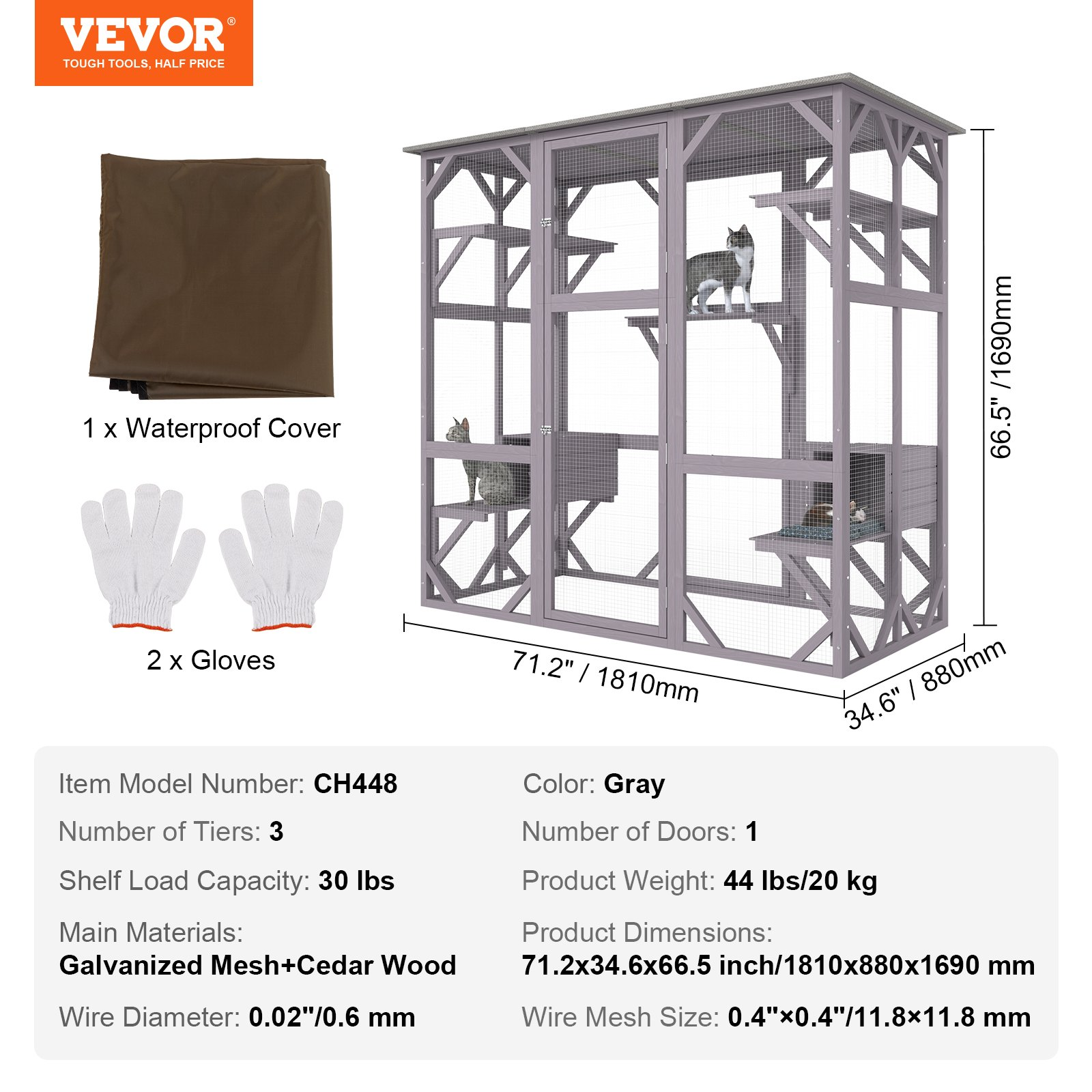 Sturdy & Safe Construction: 0.4" × 0.4" galvanized mesh keeps your cats secure while allowing airflow.