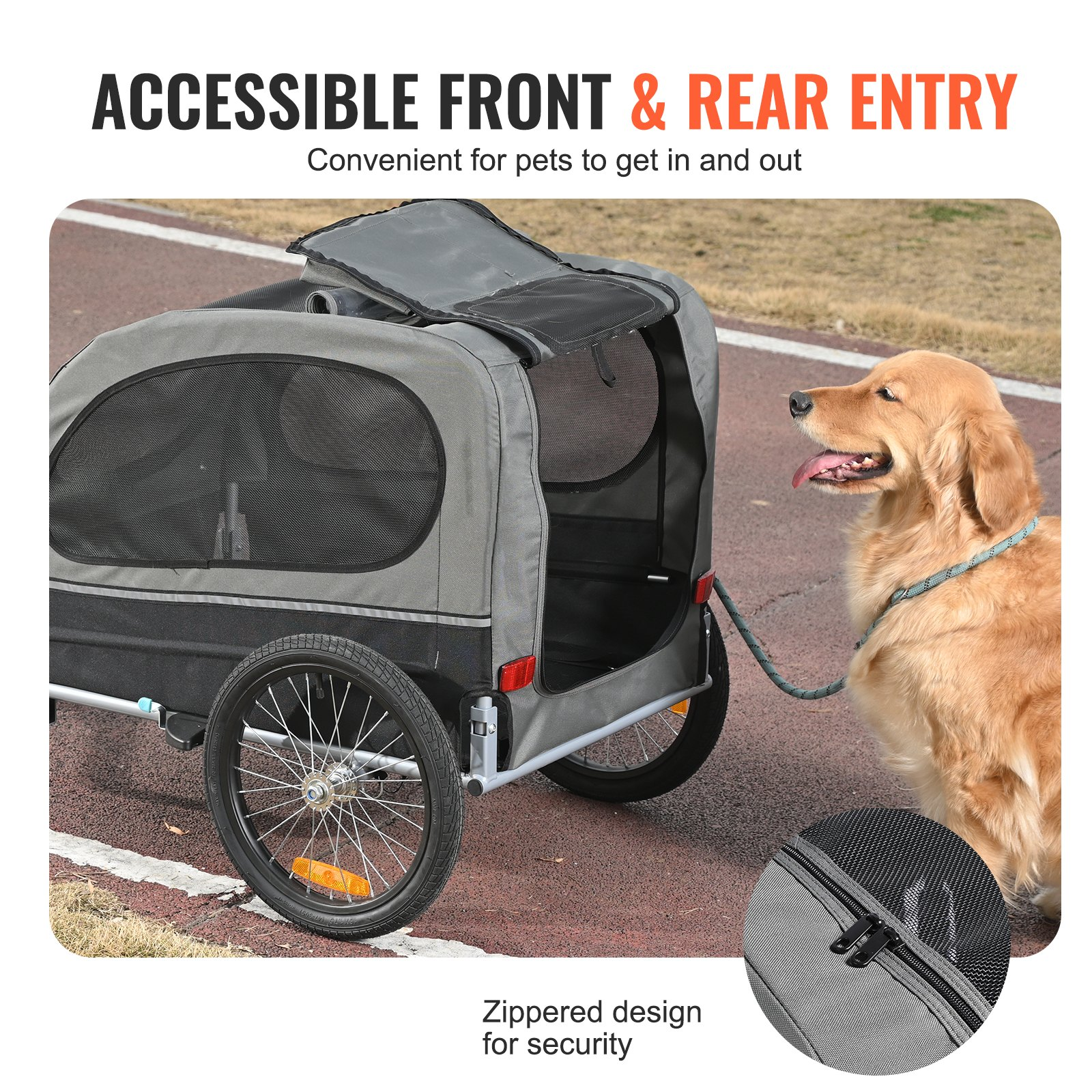 VEVOR Dog Bike Trailer, Supports up to 88 lbs, Pet Cart Bicycle Carrier, Easy Folding Frame with Quick Release Wheels, Universal Bicycle Coupler, Reflectors, Flag, Collapsible to Store, Black/Gray