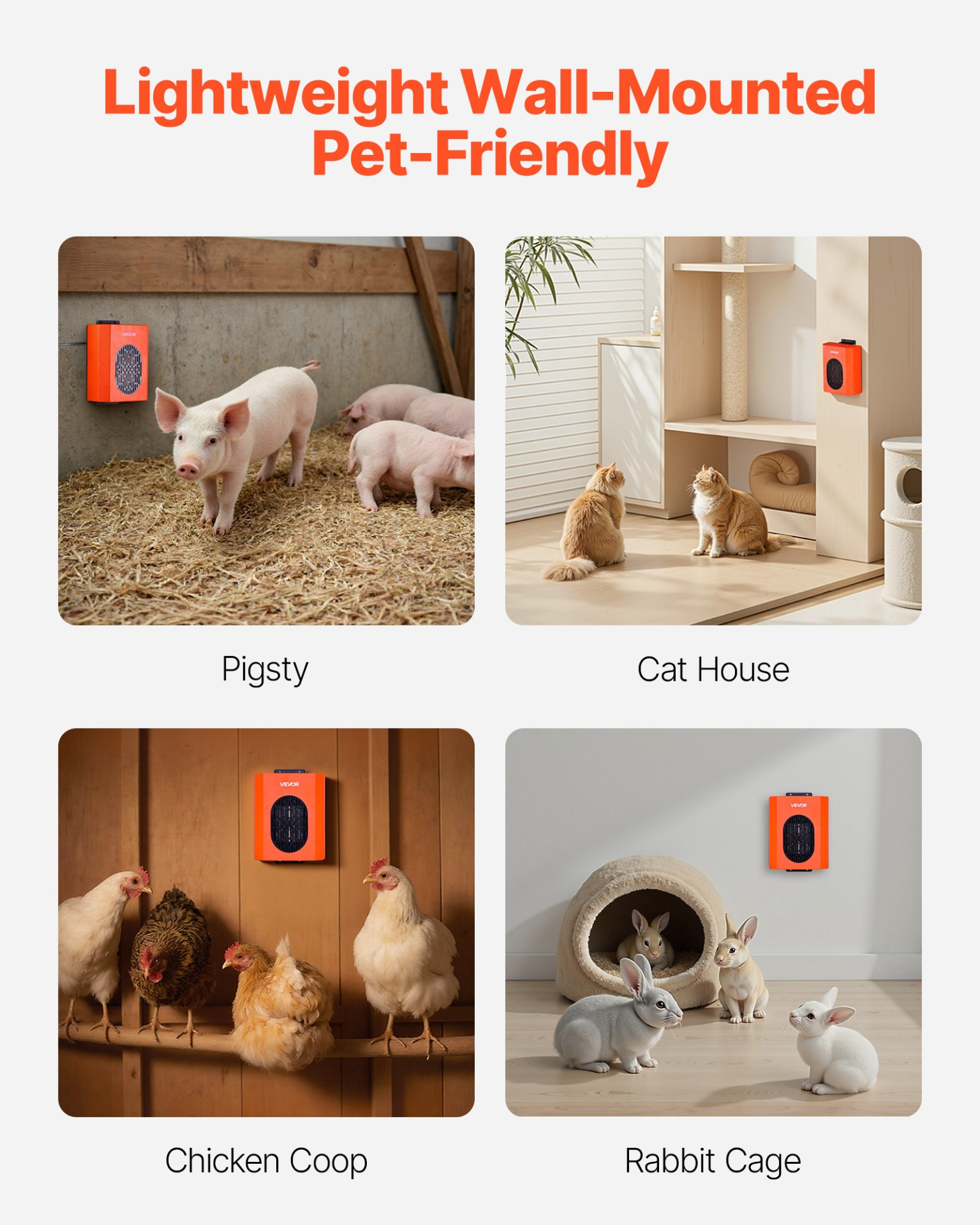 Keep your furry (or feathered) friends cozy and comfortable all year long with the VEVOR 800W Dog House Heater, a safe and efficient heating solution designed for pet houses, coops, and indoor enclosures. This compact yet powerful unit offers 10 precise temperature settings (70℉–115℉) and a programmable 24-hour timer, allowing you to customize warmth levels to your pet’s exact needs.