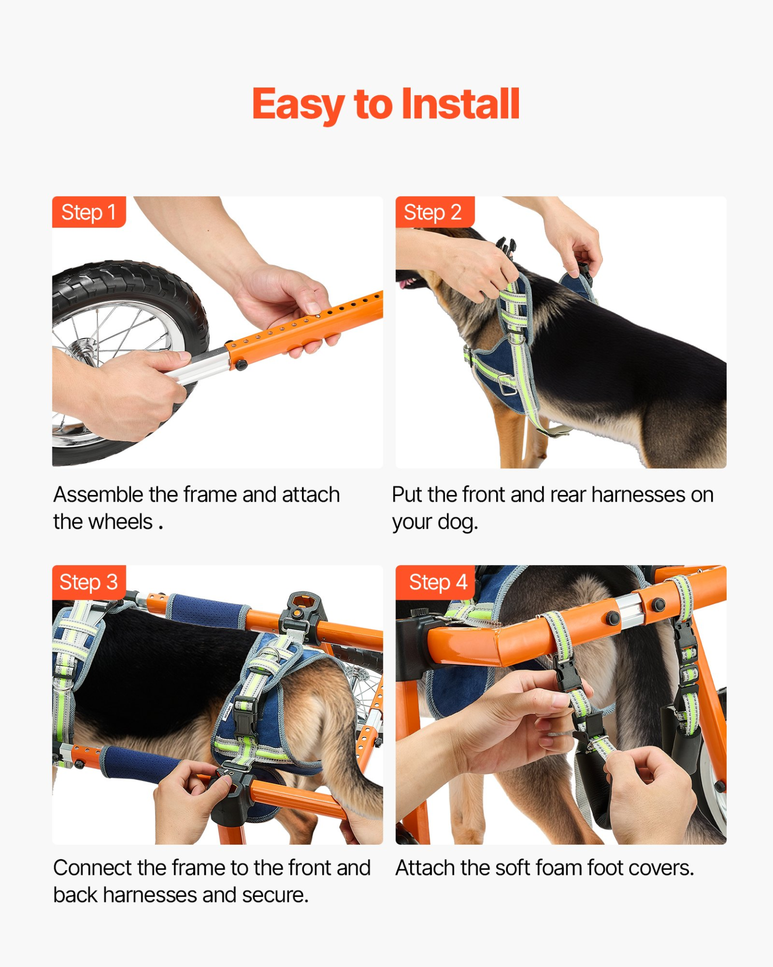 Help your furry friend regain mobility, confidence, and joy with the VEVOR Adjustable Dog Wheelchair for Back Legs, thoughtfully engineered to support large dogs recovering from injury, disability, or age-related mobility loss. Designed for comfort, strength, and adaptability, this lightweight wheelchair allows pets to move freely and safely — indoors or outdoors.