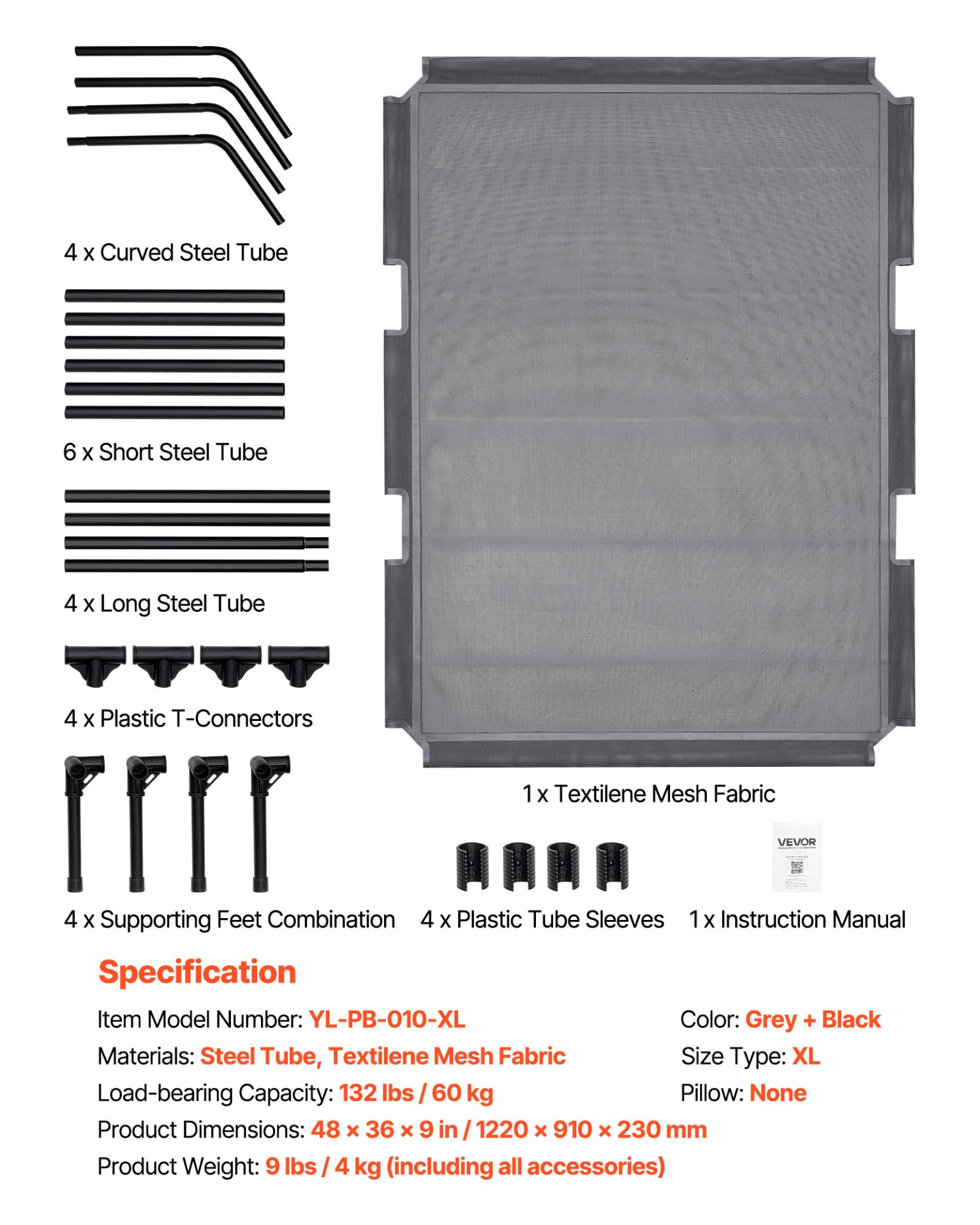 Give your furry friend the perfect spot to relax in comfort and style with the VEVOR Elevated Dog Bed (XL). Built with a heavy-duty steel frame and breathable Teslin mesh, this raised hammock bed keeps pets cool, dry, and supported in every season—whether lounging indoors or outdoors.