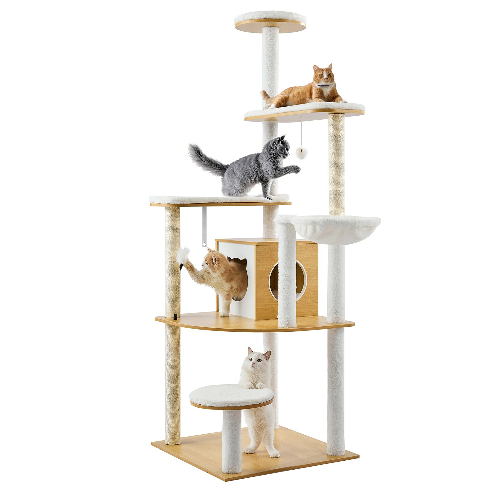VEVOR Large Cat Tree | 68.9" Multi-Level Cat Tower with Hammock, Scratching Posts & Cozy Perches | Burly Wood Cat Condo Activity Center for Indoor Cats to Play, Lounge & Rest