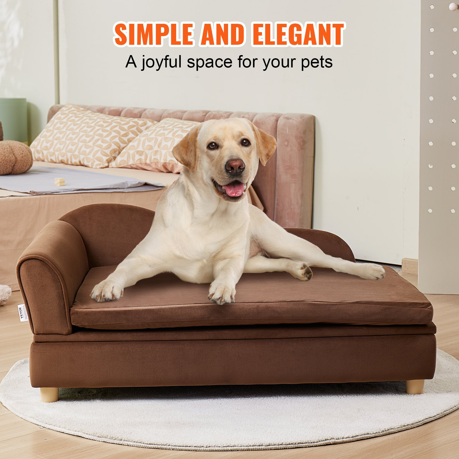 Crafted from durable wood framing and layered with thick, high-density sponge, this pet sofa provides strong support and exceptional comfort. The dark brown velvet fabric offers a soft, warm touch that’s gentle on fur and easy to maintain. With quick assembly and refined details, this VEVOR sofa turns pet rest time into a luxurious experience while elevating your interior aesthetic.