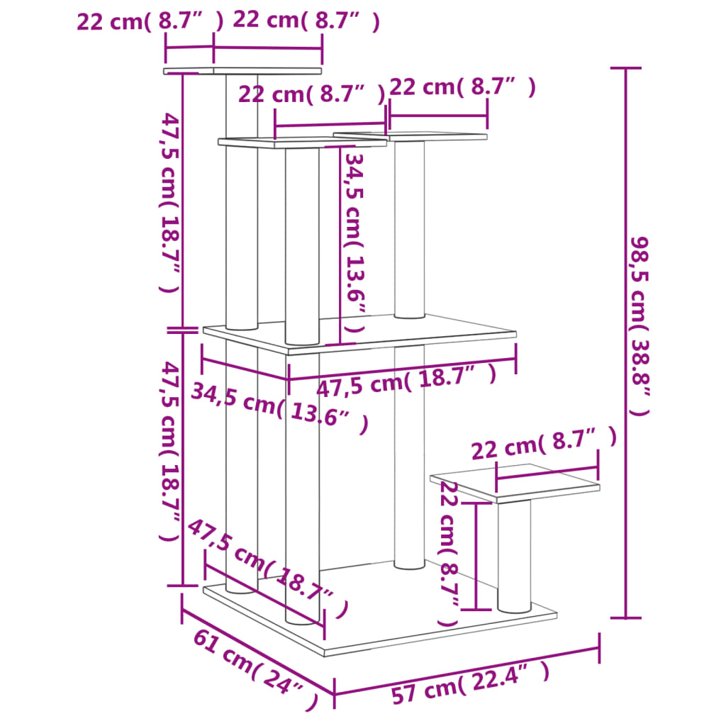 vidaXL Cat Scratching Post Dark Grey Engineered Wood, Plush, Sisal Large