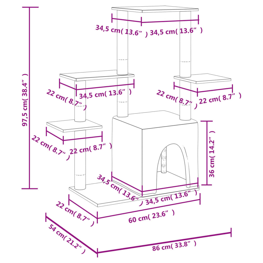 • Materials: Engineered wood, plush fabric, sisal