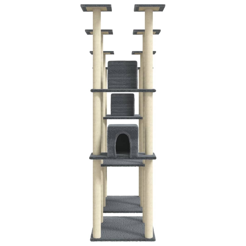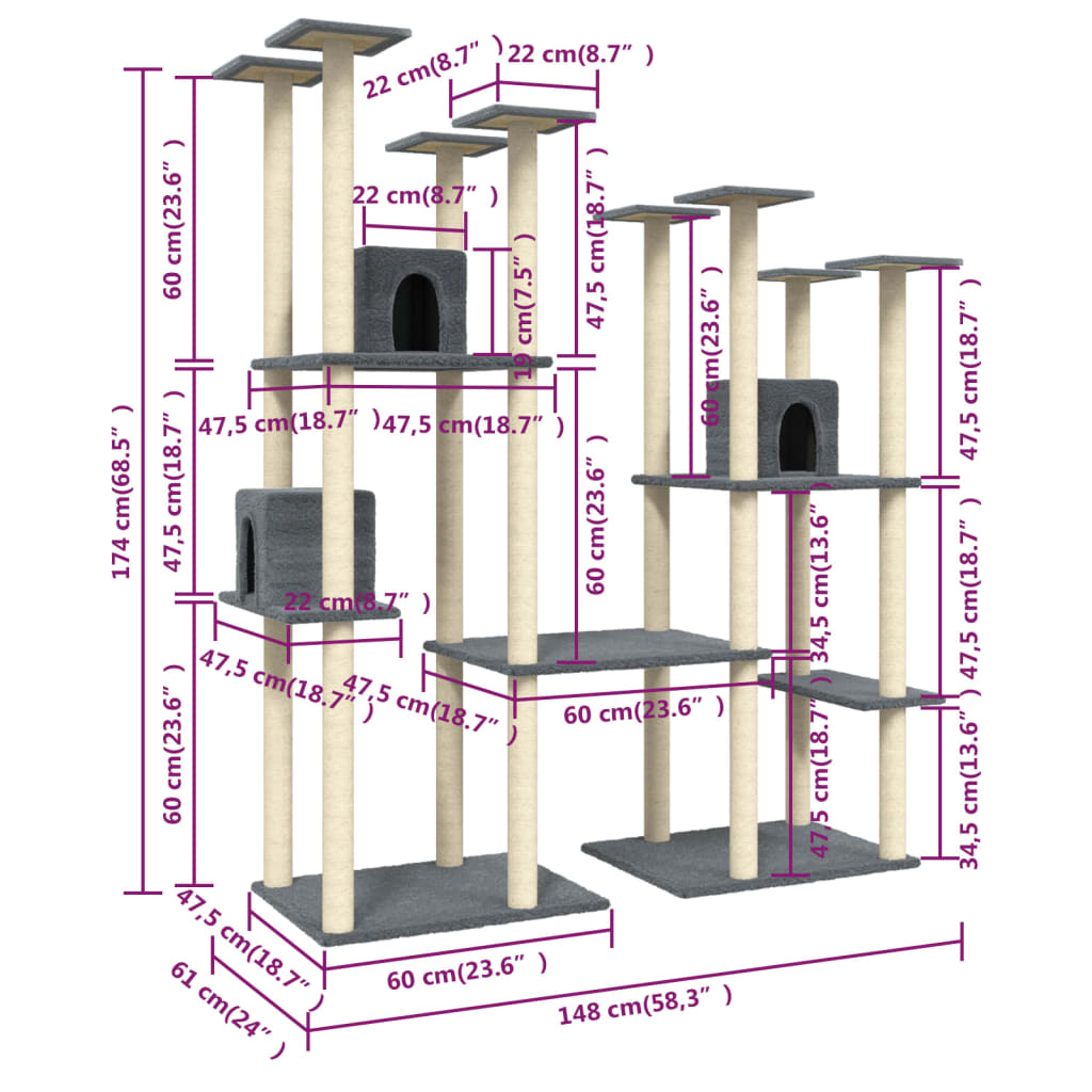This large cat tree is designed to cater to your cats while looking great in your pad. At 68.5 in tall, it blends function and style perfectly, so it's the perfect spot for your cats to play, scratch, and relax.