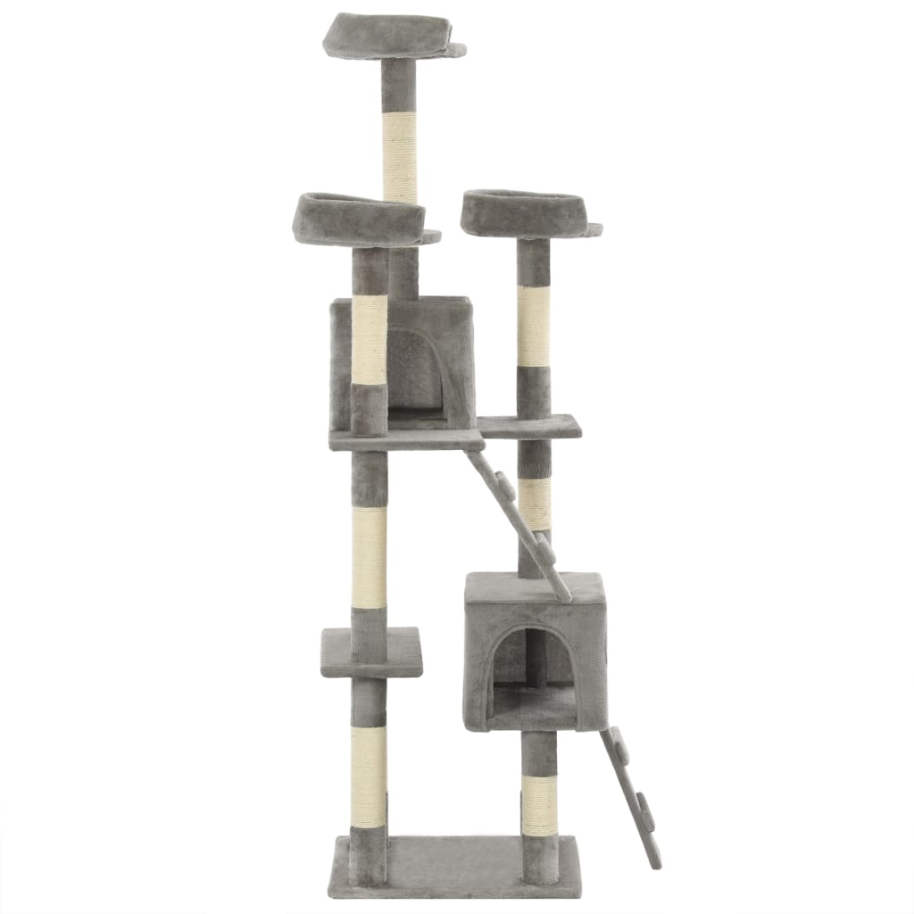 This cat tree is a great pad for your furry friends, crafted with multiple levels and spots to get them climbing and chilling. The modern grey vibe fits right in with your decor and creates a snug spot for cats to play, scratch, and lounge as they please.