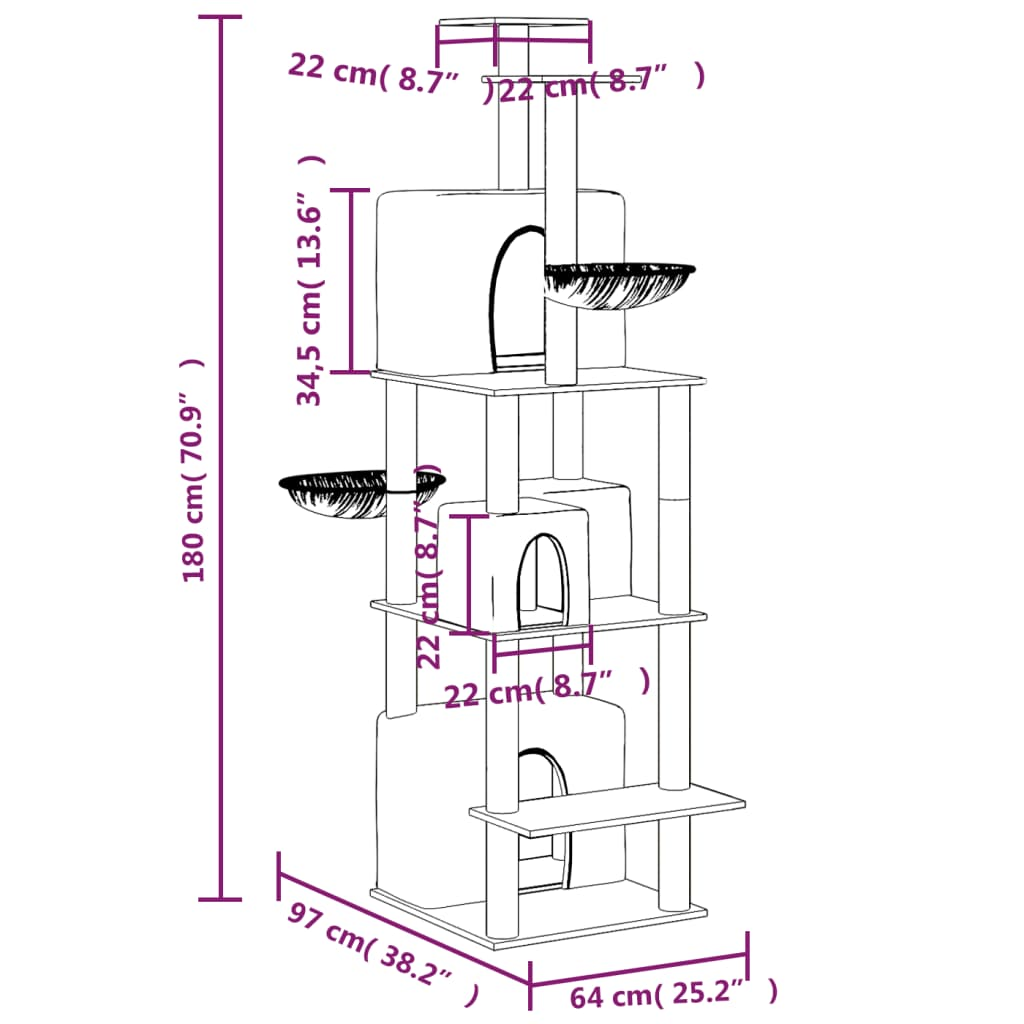 vidaXL Cat Tree Light grey Engineered wood 70.9 in Adjustable Armrests