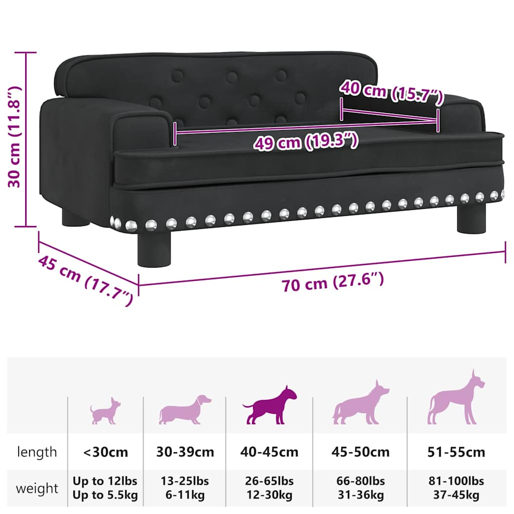 vidaXL Dog Bed Black Velvet 27.6 x 17.7 x 11.8 in Stylish Design