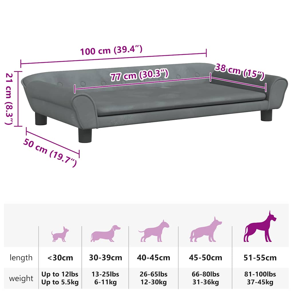vidaXL Dog Bed Dark Grey 100x50 x 8.3 " Velvet