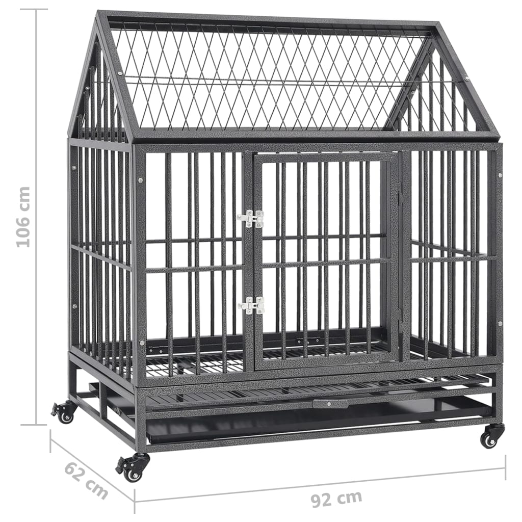 This Steel Dog Cage with Wheels and Roof is the ultimate in strong pet enclosures that mix durability and practicality. Perfect for both inside and outside use, this cage gives your pets a stylish and functional safe haven. Its industrial look fits well in various spots like backyards or terraces, ensuring your furry pals are safe and comfy.