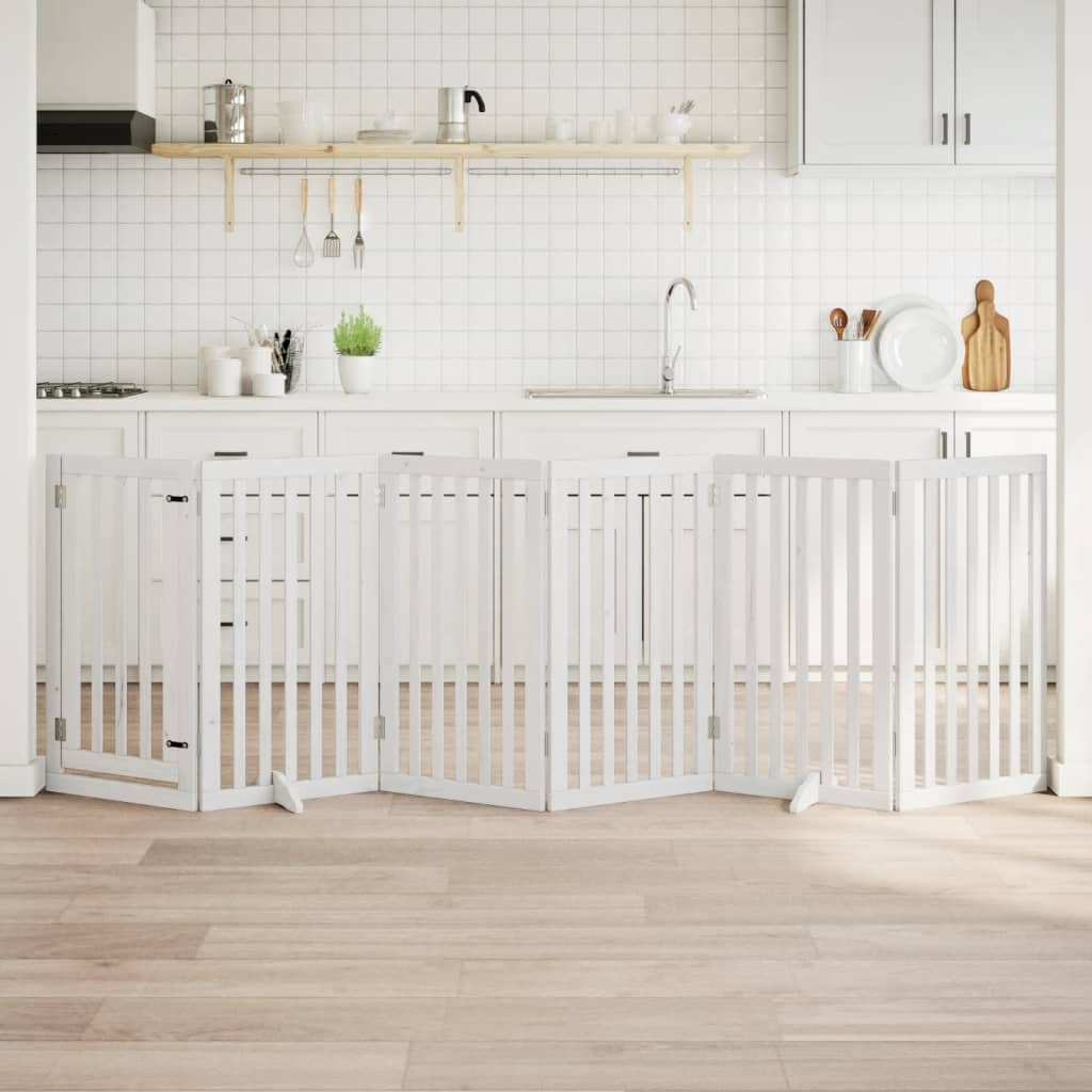 This foldable dog gate is a must-have for pet owners wanting to keep their homes safe. With a total length of 118.1 in and made from tough poplar wood, it’s both functional and stylish, fitting in nicely with your home decor.