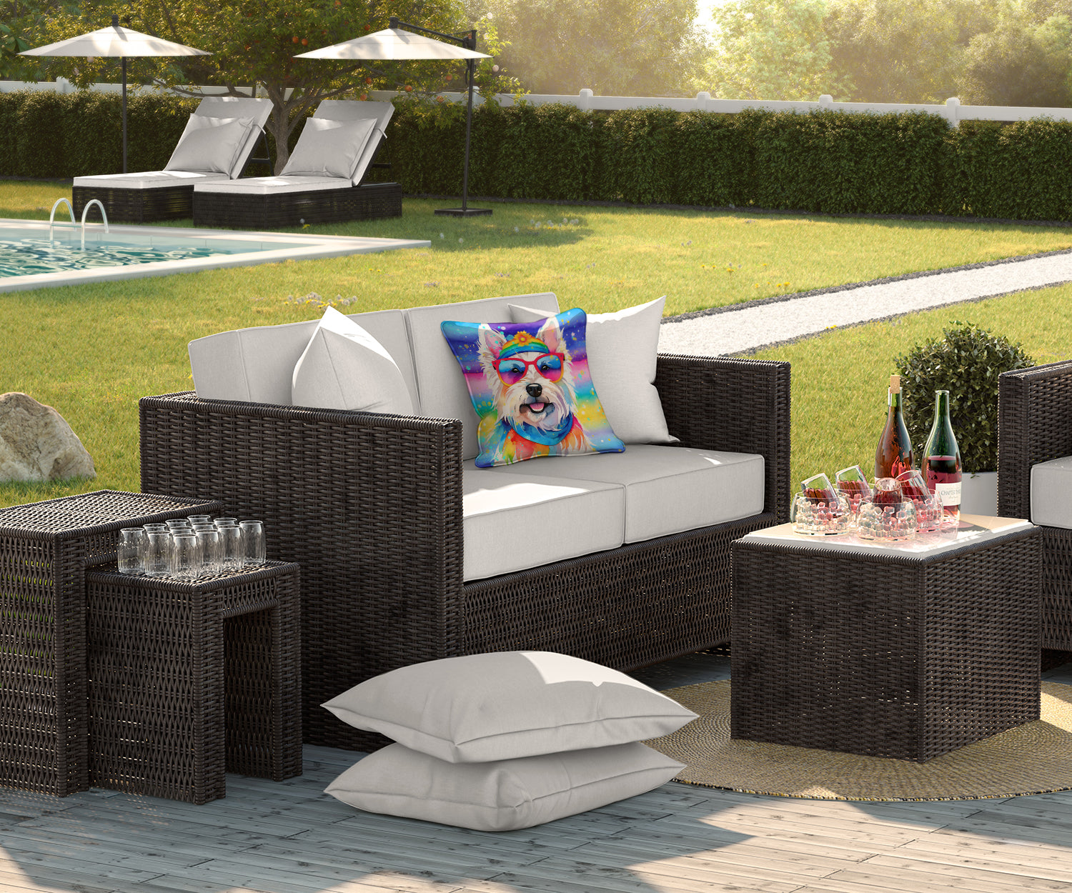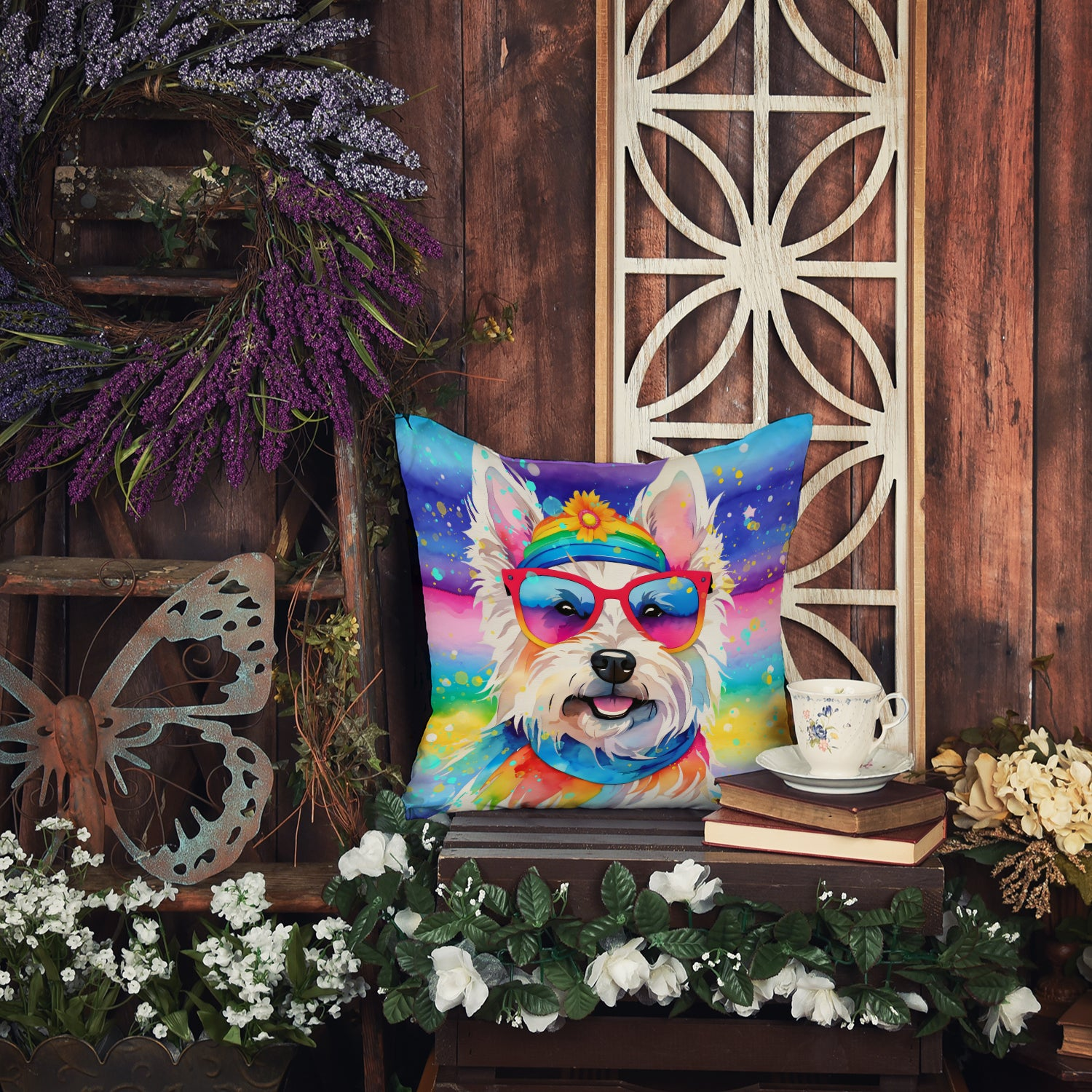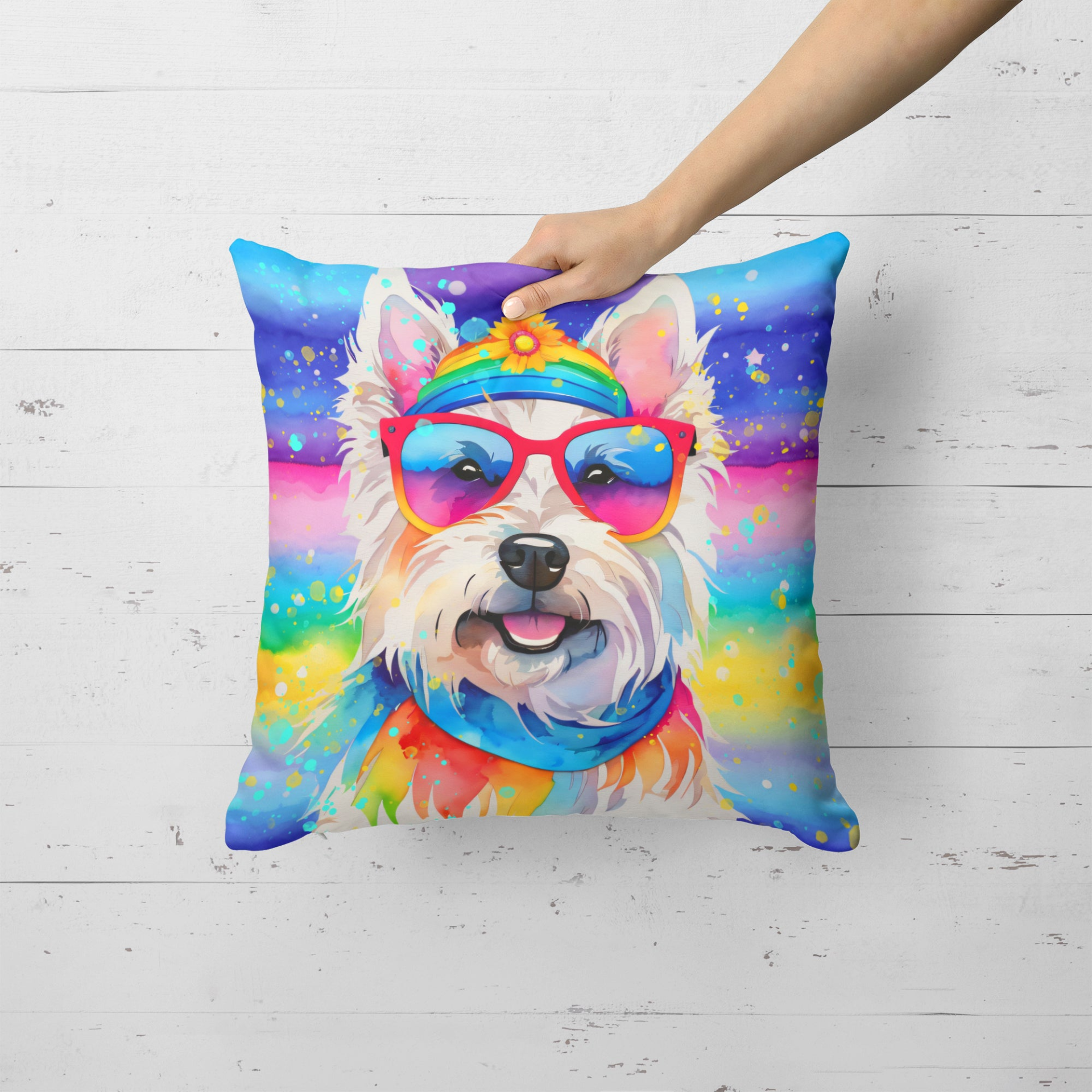 Westie Hippie Dawg Throw Pillow