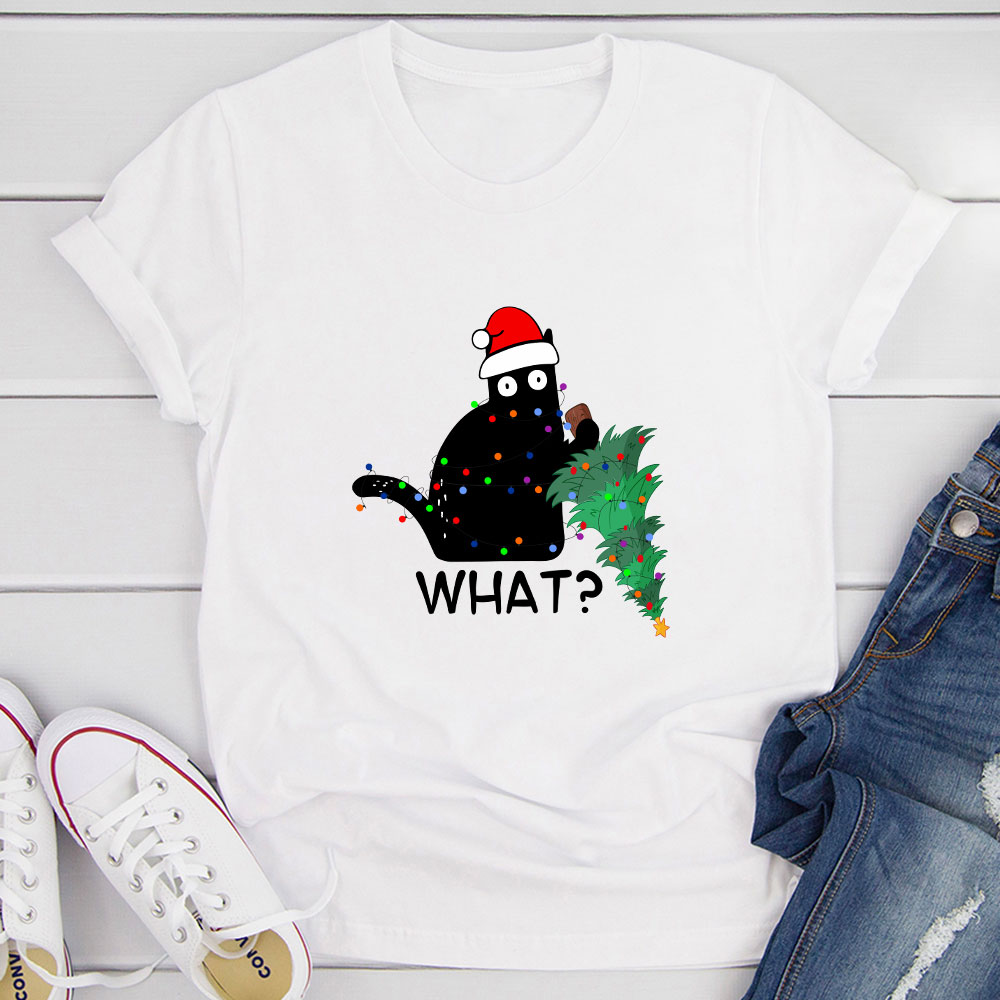 "Unleash the awesomeness of this digitally printed tee, proudly made and printed in the USA. Constructed with 100% soft and ring-spun cotton, it ensures a comfy and distinctive touch. Embrace the cuteness and elevate your look with this What Cat Christmas Tree T-Shirt."