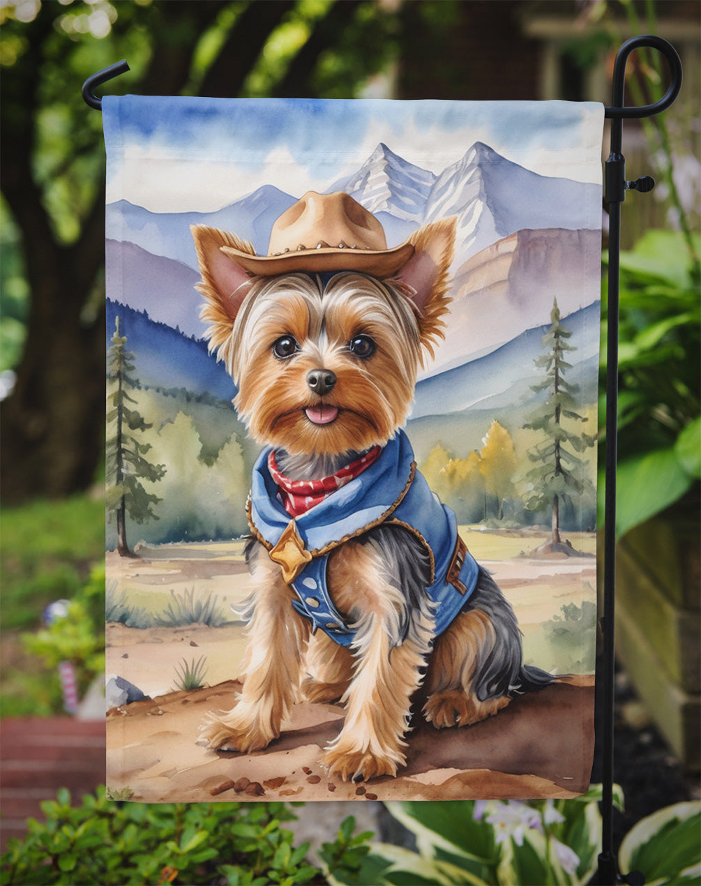 Garden Flag featuring breed specific Yorkshire Terrier artwork. Enhance the beauty of your garden, patio, or yard with Caroline's Treasures Decorative Garden Flag, proudly made in the USA. Crafted from two pieces of thick, double-sided polyester fabric, this 2-ply garden flag is designed to withstand various weather conditions, making it water-resistant and weatherproof. Featuring correctly readable words on both sides, this garden flag offers a delightful visual experience from any angle. With its heavier weight, it stands out among other garden flags, ensuring stability and durability even in wind, rain, and snow. Measuring approximately 11 1/4 inches by 15 1/2 inches, this flag allows you to personalize your outdoor decor. It comes with a 1 1/2-inch sleeve sewn in, allowing easy attachment to any standard garden flag stand or garden size porch hanger (sold separately). Make a statement in your outdoor space with Caroline's Treasures Decorative Garden Flag, a vibrant and high-quality flag that adds color and personality to your surroundings. Proudly made in the USA, it's a symbol of quality craftsmanship and attention to detail.